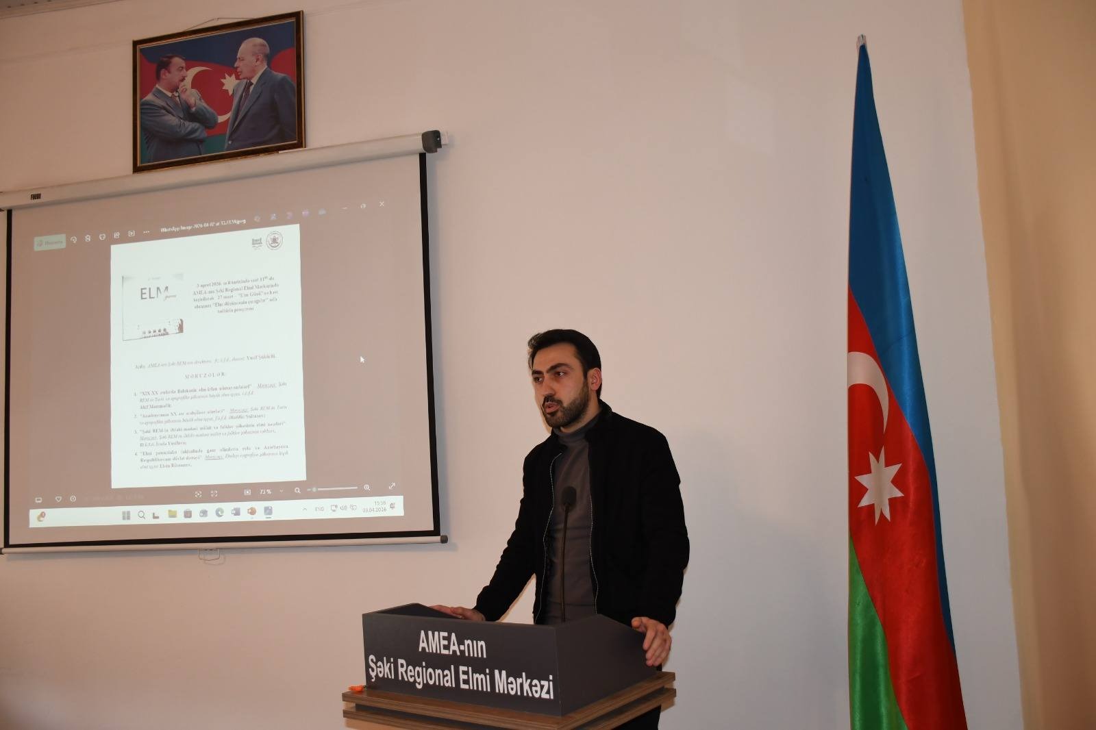 Daha sonra Şəki REM-in Gənc alim və mütəxəssislər şurasının sədri Elvin Rüstəmov “Azərbaycanda elmi potensialın gücləndirilməsində gənclər və dövlət siyasəti” mövzusunda məruzəsini təqdim edib.