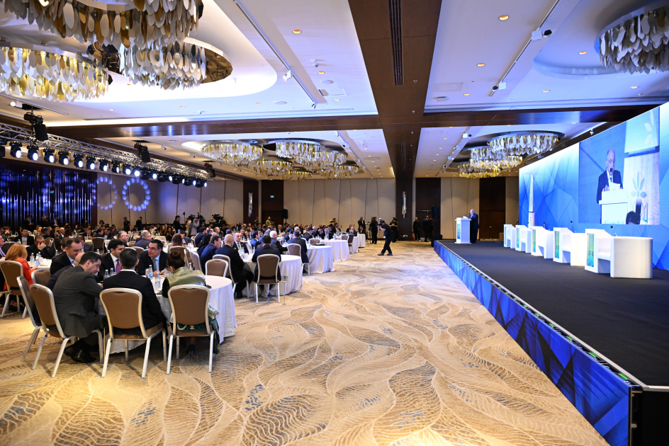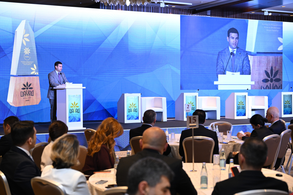 Tədbirdə çıxış edən iqtisadiyyat nazirinin birinci müavini Elnur Əliyev 2025-ci ilin iqtisadi mənzərəsi və özəl sektorun inkişaf göstəriciləri barədə məlumat verib. Qeyd olunub ki, Prezident İlham Əliyevin rəhbərliyi ilə aparılan islahatlar nəticəsində ölkəmizdə iqtisadi mühit təkmilləşib, sahibkarların rəqabət qabiliyyəti artıb, ölkənin beynəlxalq nüfuzu güclənib və xarici investisiyaların cəlbi üçün əlverişli şərait yaranıb. İqtisadi siyasətin əsas istiqamətlərindən olan qeyri-neft-qaz sektorunun inkişafı nəticəsində bu sahə 2021-2024-cü illərdə hər il orta hesabla 6,7 faiz artıb və onun iqtisadiyyatda payı 68 faizə yüksəlib, hazırda bu rəqəm 70 faizdən çoxdur. Qeyri-neft ixracı son altı ildə demək olar ki, iki dəfə artıb. Qabaqcıl ideyaların tətbiqi, dövlət-özəl tərəfdaşlıq mexanizmləri və həyata keçirilən islahatlar nəticəsində özəl sektorun iqtisadiyyatda payı 81,4 faiz səviyyəsindədir. Son illərdə dövlətin əsas prioritetlərindən biri işğaldan azad olunmuş ərazilərin bərpası və məcburi köçkünlərin öz doğma yurdlarına mümkün qədər qısa müddətdə qayıtmasıdır. Dövlət və özəl sektor əməkdaşlığı bu sahədə də özünü müsbət mənada göstərir və bizneslər Böyük Qayıdış prosesində fəal iştirak edirlər.