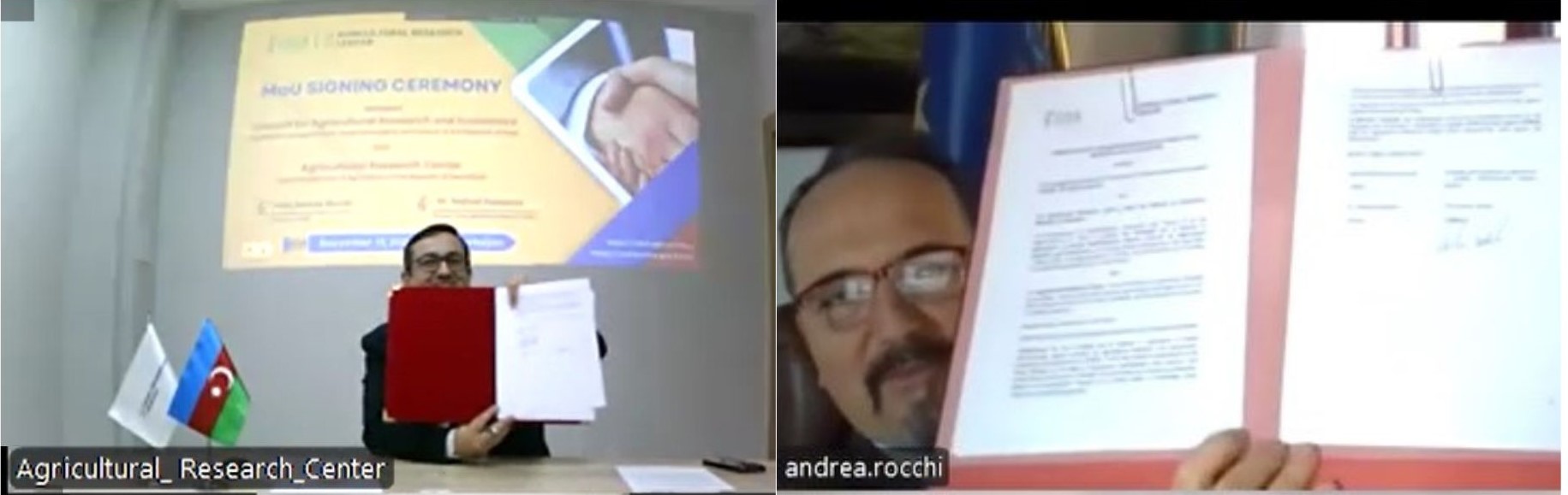 Onlayn imzalanma mərasimində Rəşad Hüseynov Aqrar Tədqiqatlar Mərkəzinin fəaliyyəti haqqında məlumat verib. Bildirib ki, Mərkəz aqrar siyasətin elmi əsaslandırılması və analitik bazasının formalaşdırılması istiqamətində fəaliyyət göstərir və bu sahədə “beyin mərkəzi” kimi beynəlxalq əməkdaşlığa xüsusi əhəmiyyət verilir. Direktor Mərkəzin həm də aqrar sahədə elmi tədqiqat işlərinin aparılmasında, tədqiqatçıların yetişdirilməsində oynadığı mühüm rolu qeyd edib.
