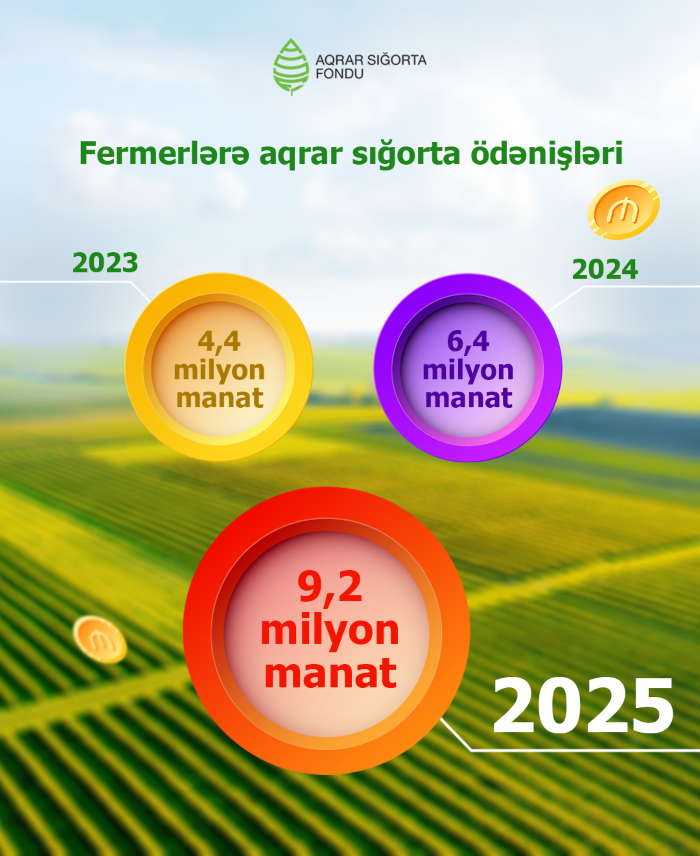 Xatırladaq ki, Aqrar Sığorta Fondu 2023-cü ildə 4,4 milyon manat, 2024-cü ildə isə 6,4 milyon manat sığorta ödənişi həyata keçirmişdi.