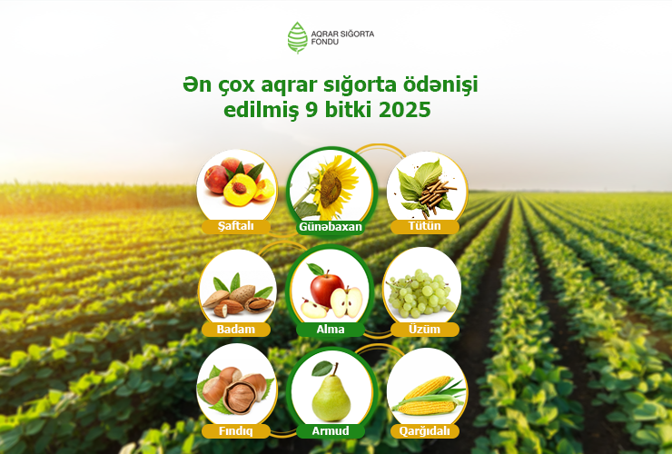 2025-ci ildə Aqrar Sığorta Fondu tərəfindən sığortalanan 41 bitki növündən 26-sı üzrə sığorta ödənişi həyata keçirilib.