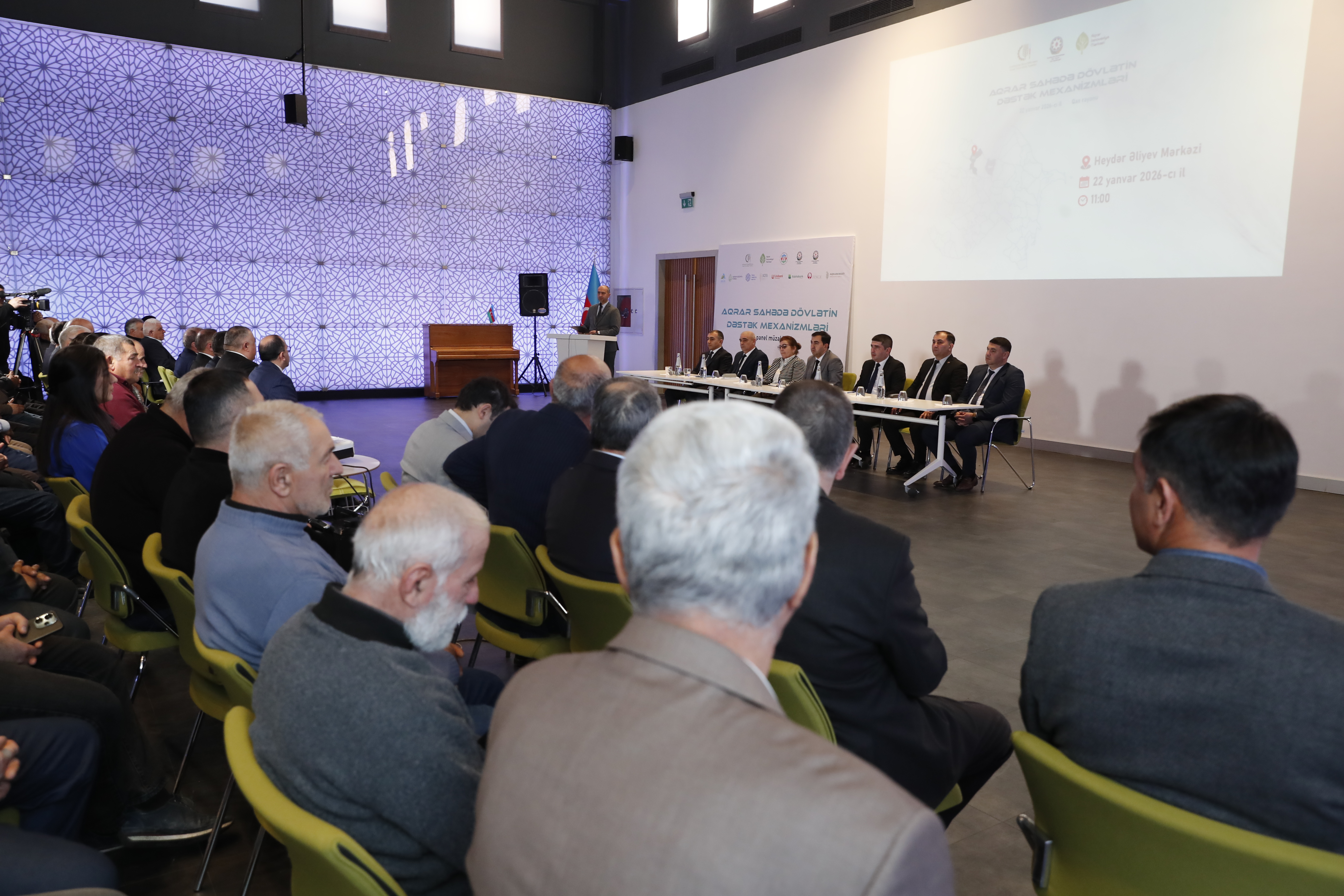 XQ xəbər verir ki, tədbirdə dövlət qurumları və özəl maliyyə təşkilatlarının nümayəndələrinin iştirakı ilə kənd təsərrüfatına dövlət dəstəyi mexanizmləri barədə fermer və sahibkarlarla geniş fikir mübadiləsi aparılıb.