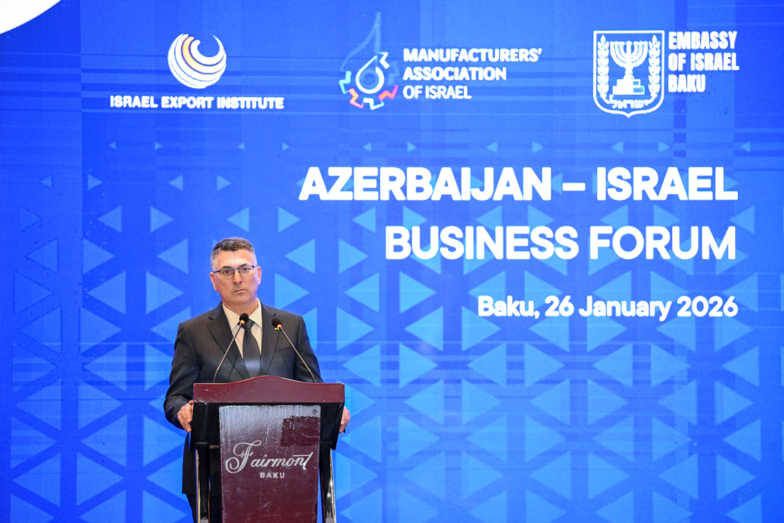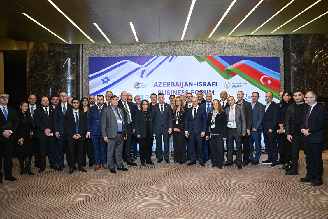 Bakıda Azərbaycan-İsrail biznes forumu keçirilib. Tədbirdə hər iki ölkədən rəsmi şəxslərlə yanaşı, sənaye, tikinti, əczaçılıq, kənd təsərrüfatı, texnologiyalar, su təchizatı və idarəçiliyi, nəqliyyat-logistika, kibertəhlükəsizlik, bankçılıq, turizm və digər sahələrdə fəaliyyət göstərən 100-dən çox şirkət nümayəndəsi iştirak edib.