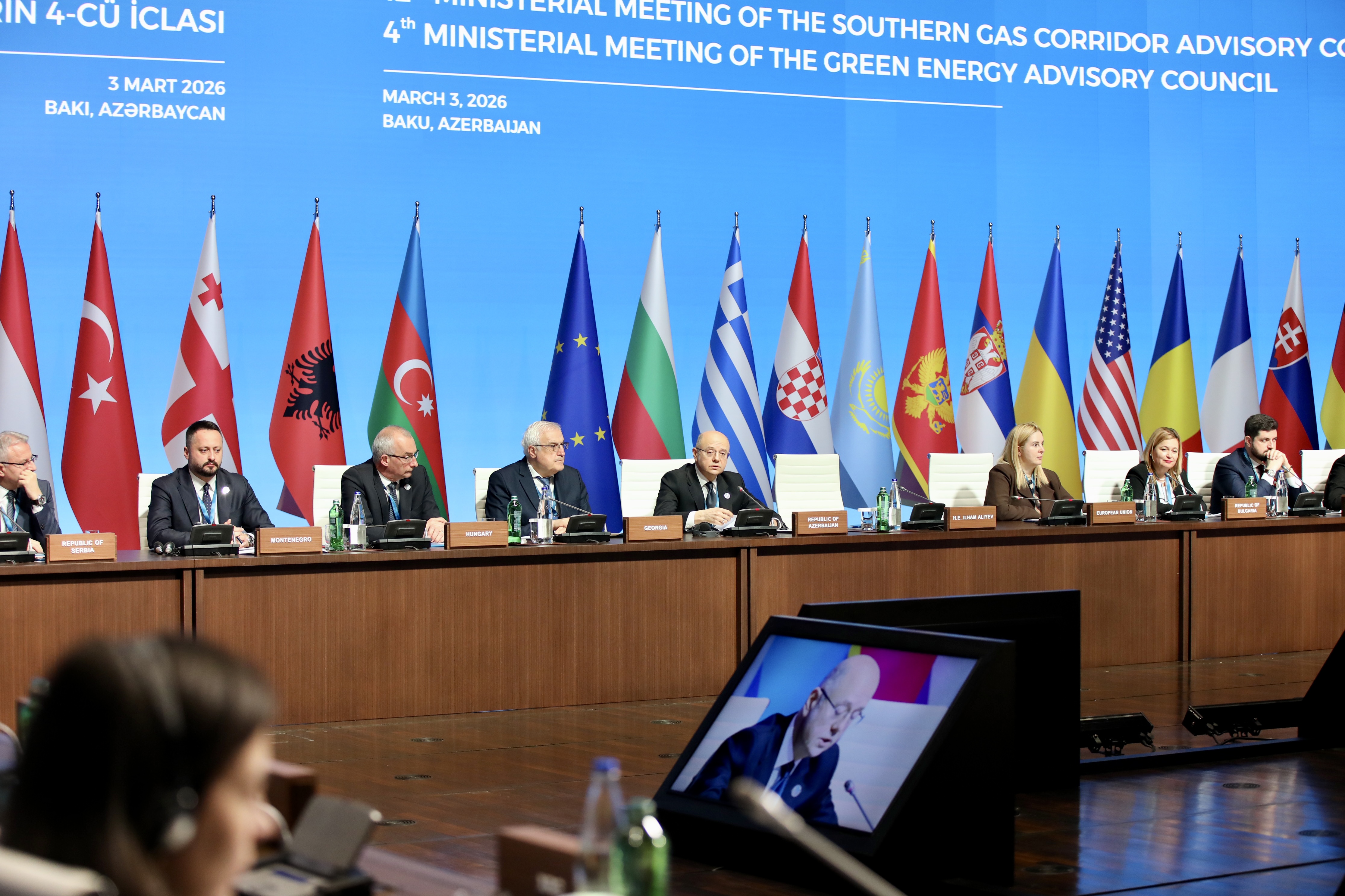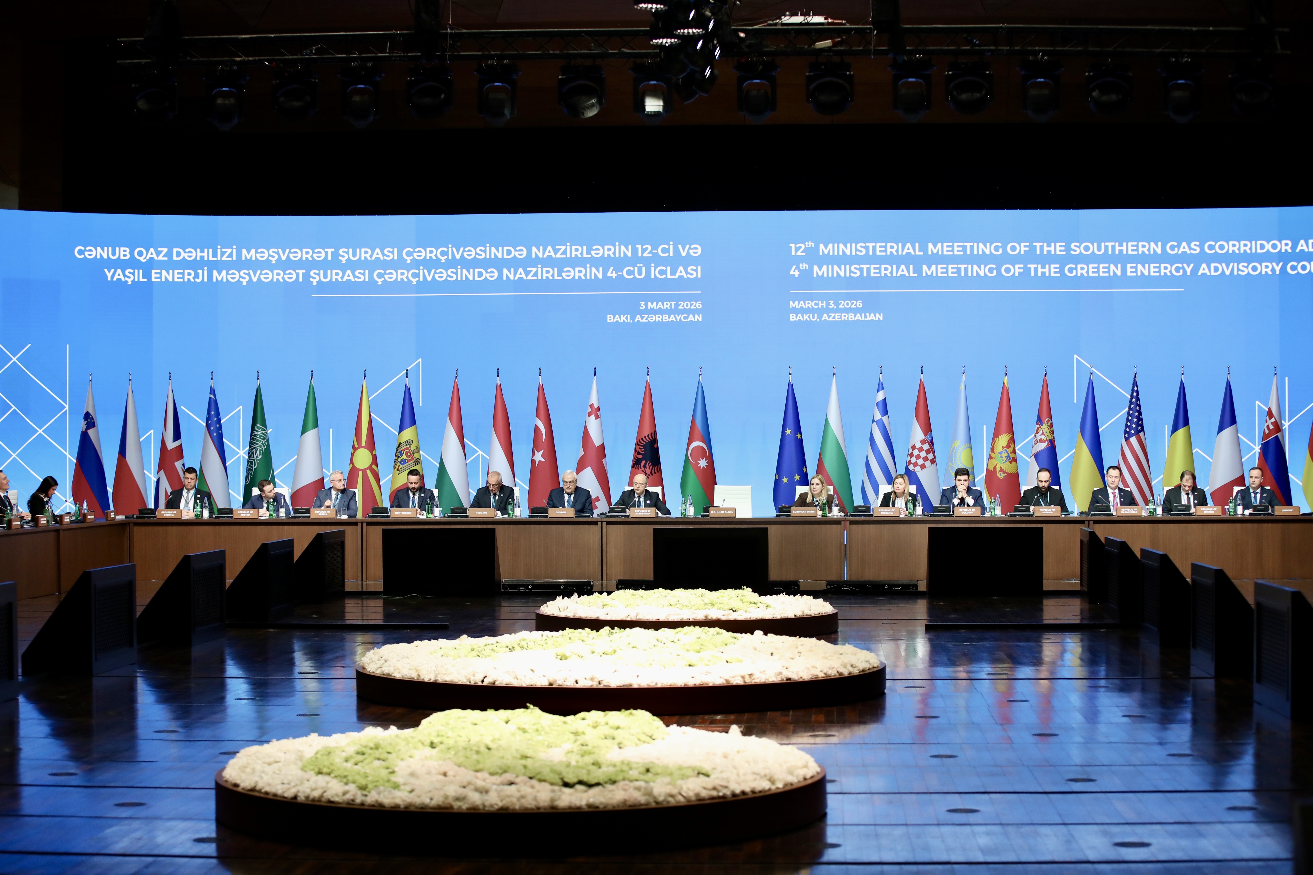 Cənub Qaz Dəhlizi Məşvərət Şurası nazirlərin 12-ci iclası və Yaşıl Enerji Məşvərət Şurası nazirlərin 4-cü iclası “Nazirlər sessiyası”, “Cənub Qaz Dəhlizi sessiyası: Cənub Qaz Dəhlizində davamlı uğur və yeni inkişaf mərhələsi” və “Yaşıl Enerji Layihələri” üzrə 3 plenar sessiya ilə davam edib.