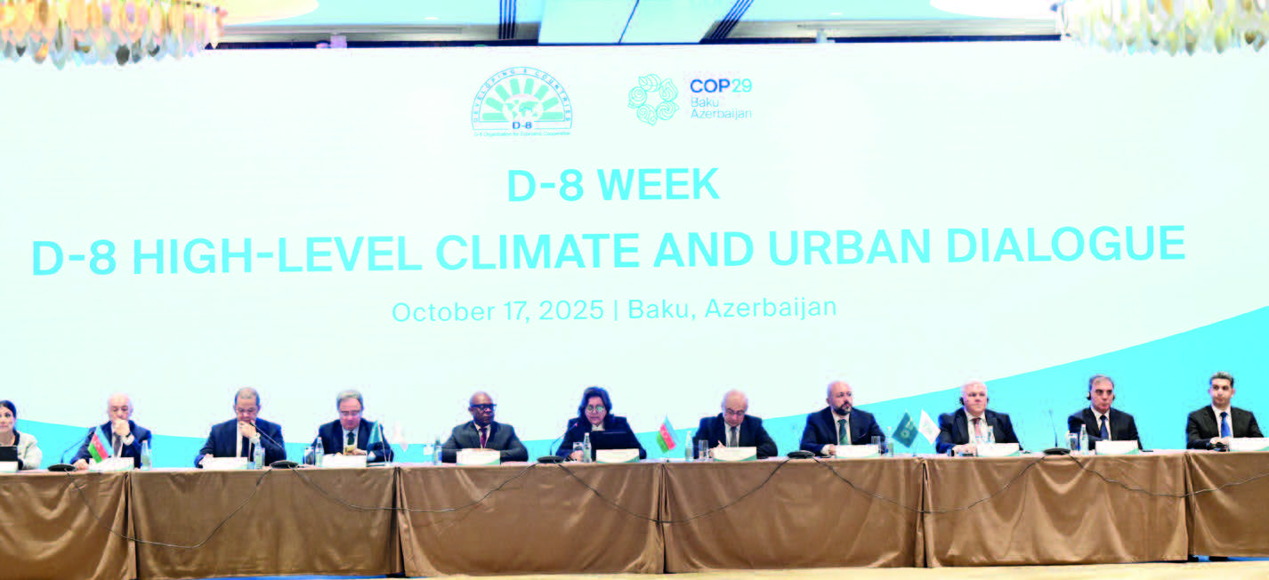 İqlim və Şəhərlər üzrə D-8 Yüksək Səviyyəli Dialoq tədbiri Azərbaycanın COP29 Sədrliyi çərçivəsində təşkil edilir və tədbirdə D-8 üzv ölkələrinin İqlim və Şəhərsalma Nazirləri, D-8 Komissarları və D-8 regionundan olan şəhərlərin rəhbərləri iştirak edir. Bu rəsmilər, həmçinin Azərbaycanın Üçüncü Milli Şəhərsalma Forumunda da iştirak ediblər.