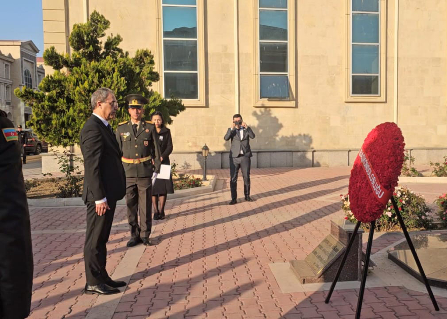 Türkiyənin Naxçıvan Muxtar Respublikasındakı baş konsulu Asip Kaya abidə önünə gül çələngi qoyub.