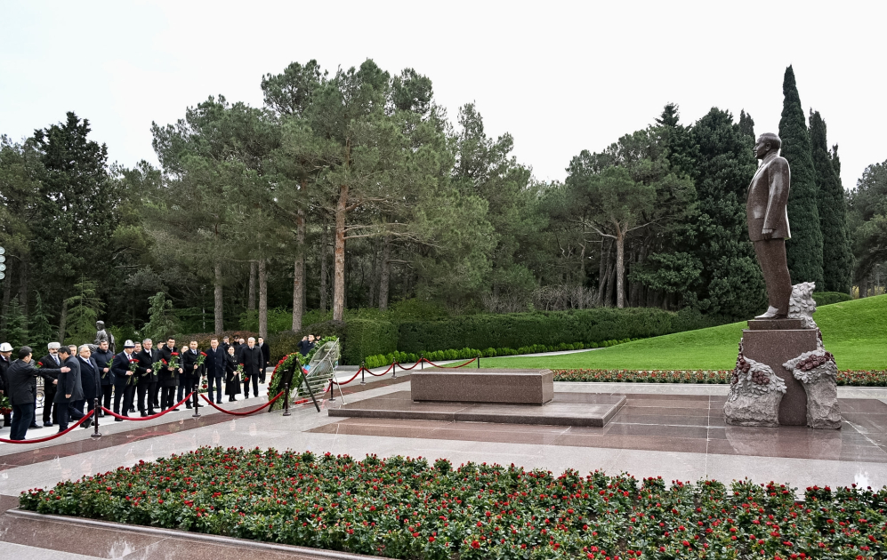 AZƏRTAC xəbər verir ki, nümayəndə heyəti əvvəlcə xalqımızın Ümummilli Lideri, müasir müstəqil Azərbaycan dövlətinin memarı və qurucusu Heydər Əliyevin xatirəsini ehtiramla yad edib, məzarı önünə əklil qoyub, tər çiçəklər düzüb.