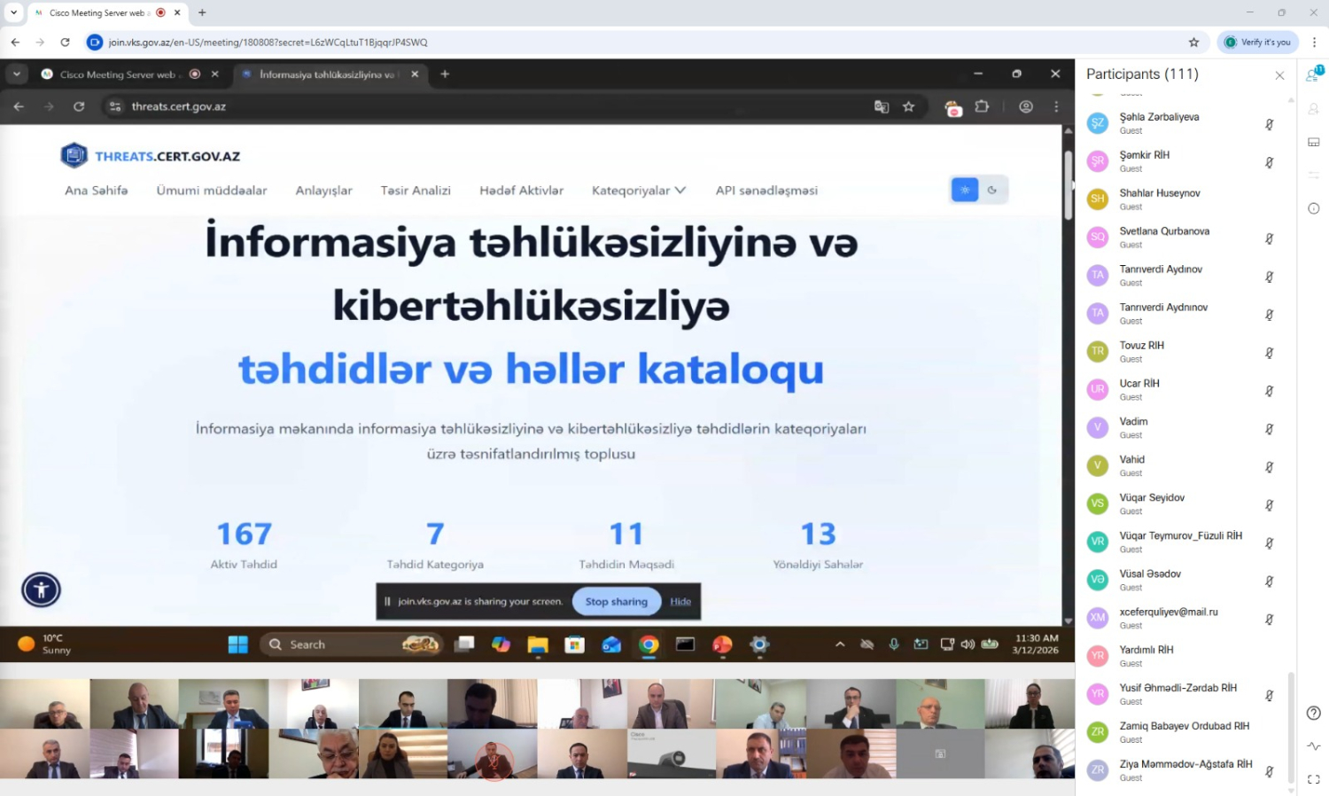 Tədbirdə 100-ə yaxın dövlət qurumundan ümumilikdə 110 nümayəndə iştirak edib. Vebinar çərçivəsində informasiya təhlükəsizliyi risklərinin müəyyən edilməsi, qiymətləndirilməsi və idarə olunması ilə bağlı praktiki yanaşmalar təqdim olunub.