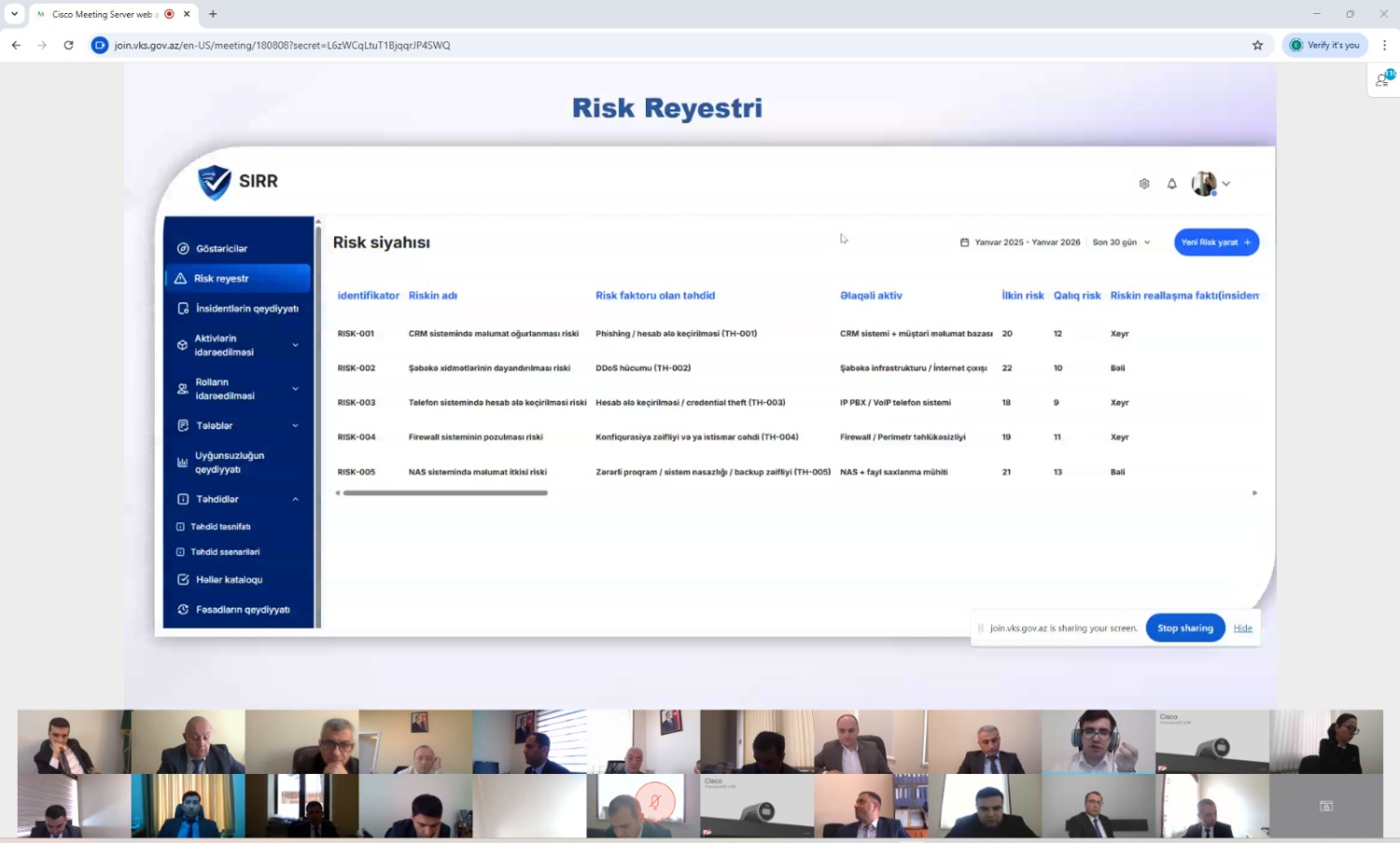 Vebinar zamanı informasiya təhlükəsizliyi riskləri reyestrinin aparılması qaydası, təhdidlər və həllər kataloqu, həmçinin Rəqəmsal Risk Reyestri platforması barədə təqdimatlar keçirilib.