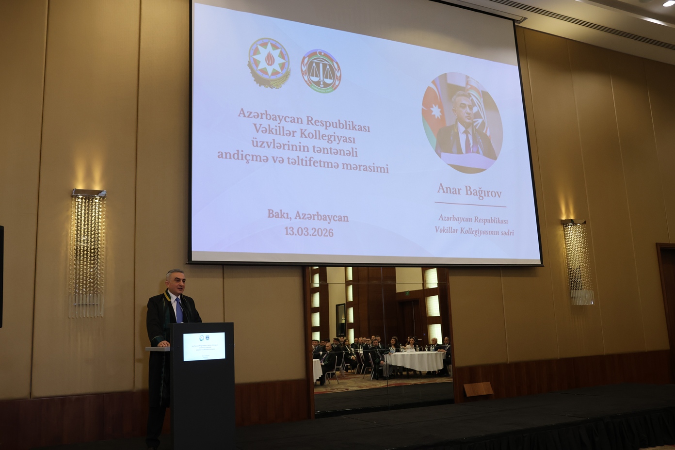 2026-cı il martın 13-də “Hilton” mehmanxanasında Azərbaycan Respublikası Vəkillər Kollegiyası (VK) Rəyasət Heyətinin geniştərkibli iclası və vəkilliyə namizədlərin təntənəli andiçmə mərasimi keçirilib.