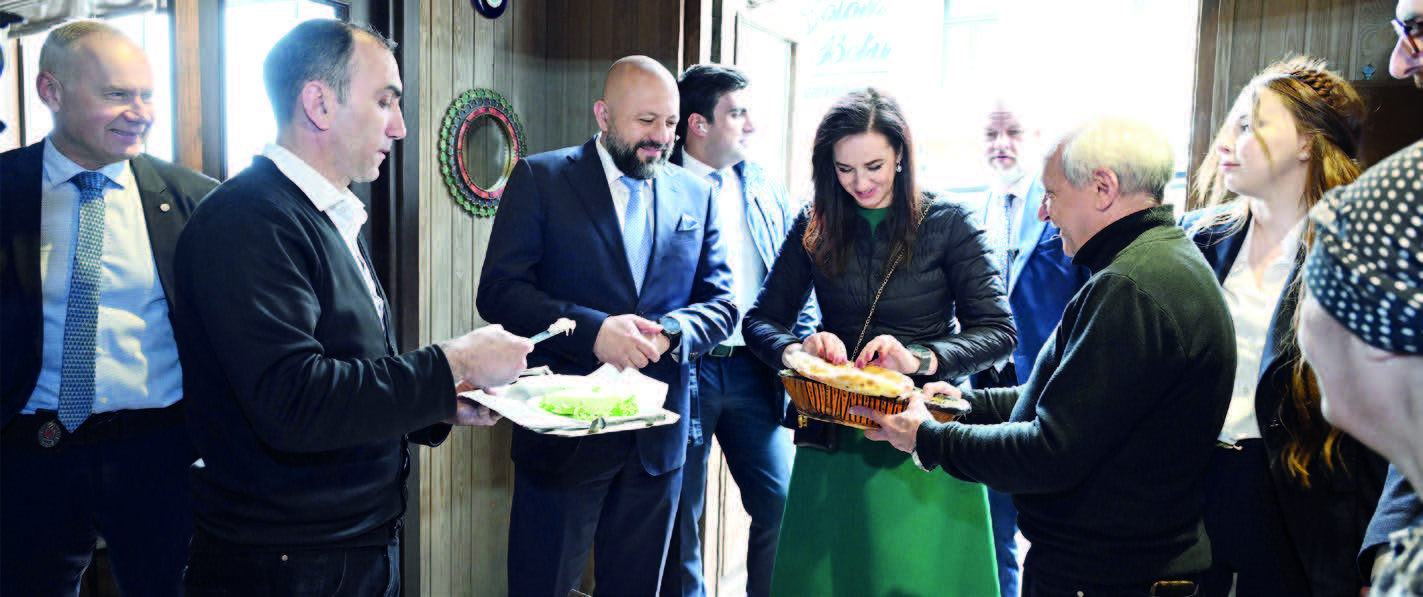 İçərişəhərdə gəzinti zamanı xanım İnqa Ruqiniene təndir çörəyinə qonaq edilib.