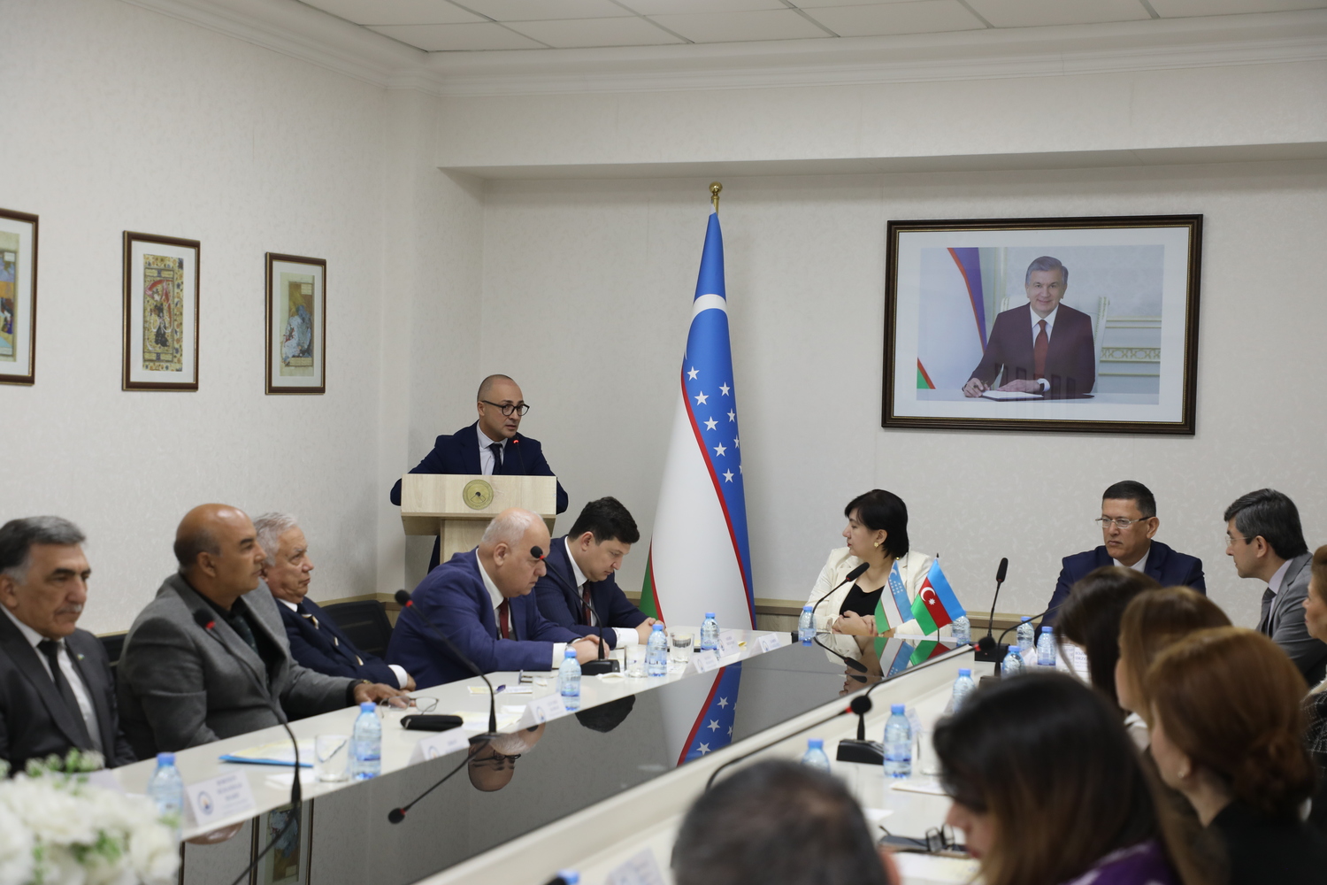 Azərbaycan Dövlət Pedaqoji Universitetinin beynəlxalq əlaqələr üzrə prorektoru, professor Mahirə Hüseynova “Özbəkistan və Azərbaycan xalqlarının mədəni və linqvistik ortaq kökləri: tarixi və müasir aspektlər” mövzusunda elmi məruzəsində Azərbaycan–Özbəkistan münasibətlərinin tarixi, siyasi və mədəni inkişaf dinamikasını çoxşaxəli şəkildə təhlil edib. O qeyd edib ki, hər iki xalqın müstəqillik əldə etməsindən sonra ümummilli lider Heydər Əliyev və Özbəkistanın birinci prezidenti İslam Kərimov arasında formalaşmış səmimi dostluq və strateji əməkdaşlıq münasibətləri dövlətlərarası əlaqələrin dərinləşməsində mühüm rol oynamış, bu münasibətlər iki qardaş xalqın qarşılıqlı inkişafına ciddi təkan verib.
