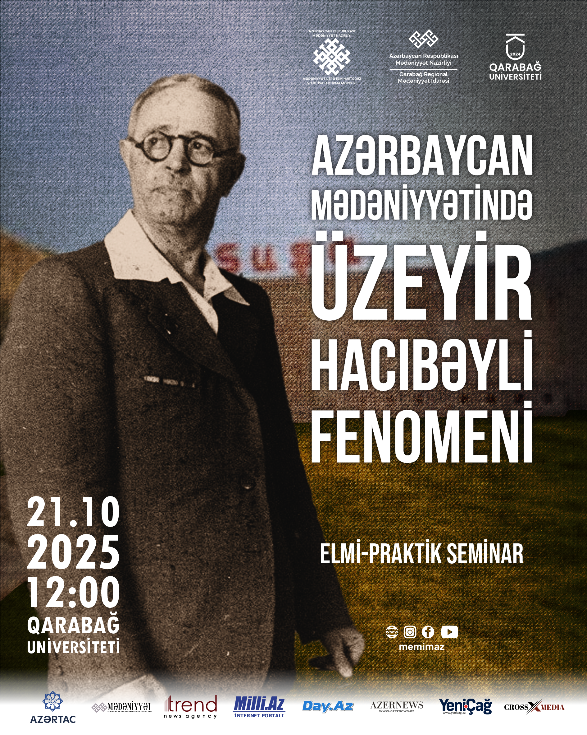 MEMİM-in “Sənətkarın dostu” layihəsi üzrə oktyabrın 20-də Qarabağ Universiteti İncəsənət fakültəsinin dəstəyi ilə bu təhsil ocağında xanəndə, pedaqoq, Əməkdar incəsənət xadimi Aqil Məlikovla görüş, oktyabrın 21-də isə “Azərbaycan mədəniyyətində Üzeyir Hacıbəyli fenomeni” mövzusunda elmi-praktik seminar keçiriləcək. Tədbir dahi bəstəkar, Azərbaycan professional musiqisinin banisi, musiqişünas və pedaqoq Üzeyir Hacıbəylinin 140 illik yubileyi münasibətilə gerçəkləşəcək.