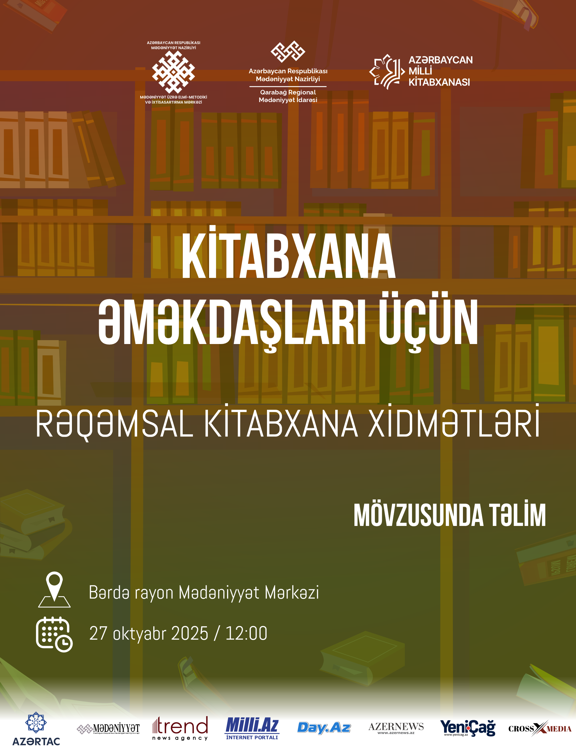 Oktyabrın 27-də Bərdə rayon Mədəniyyət Mərkəzində kitabxana əməkdaşları üçün təlim təşkil ediləcək.