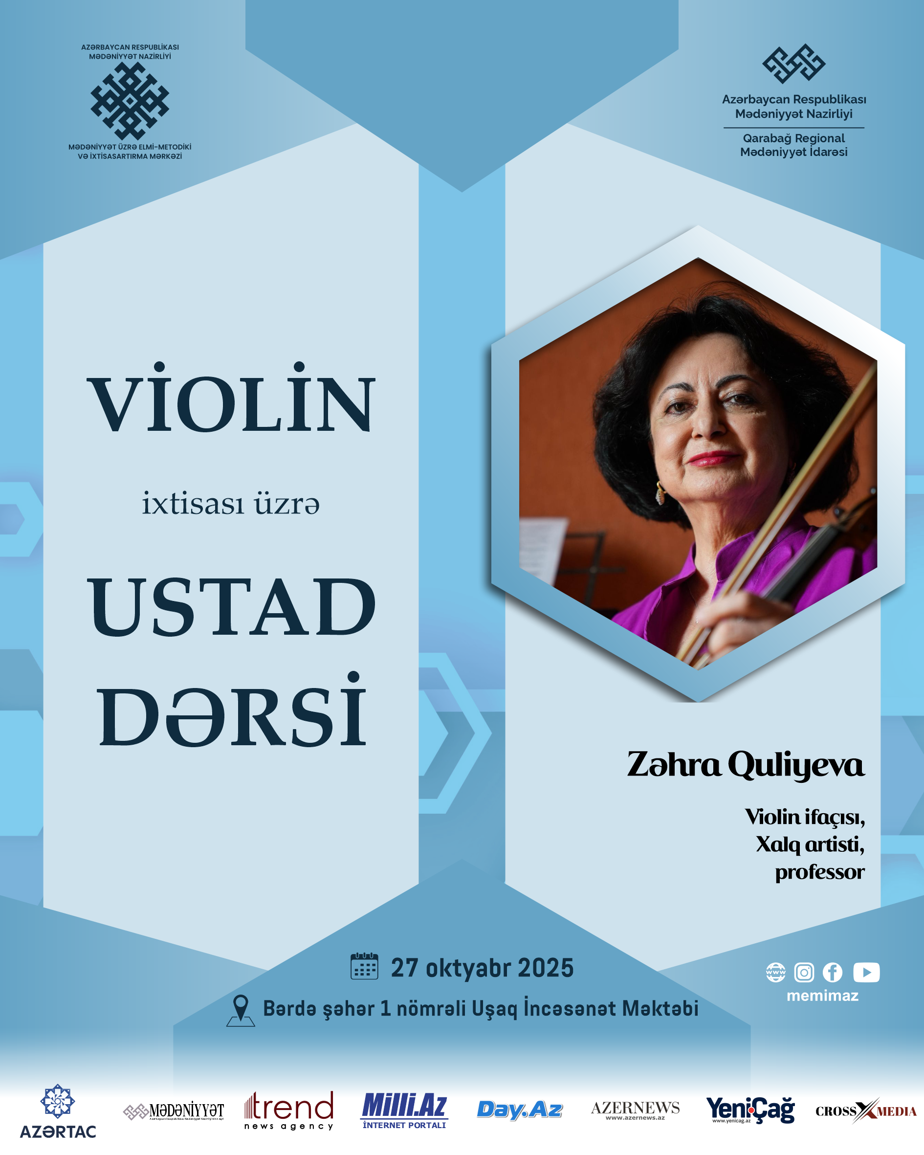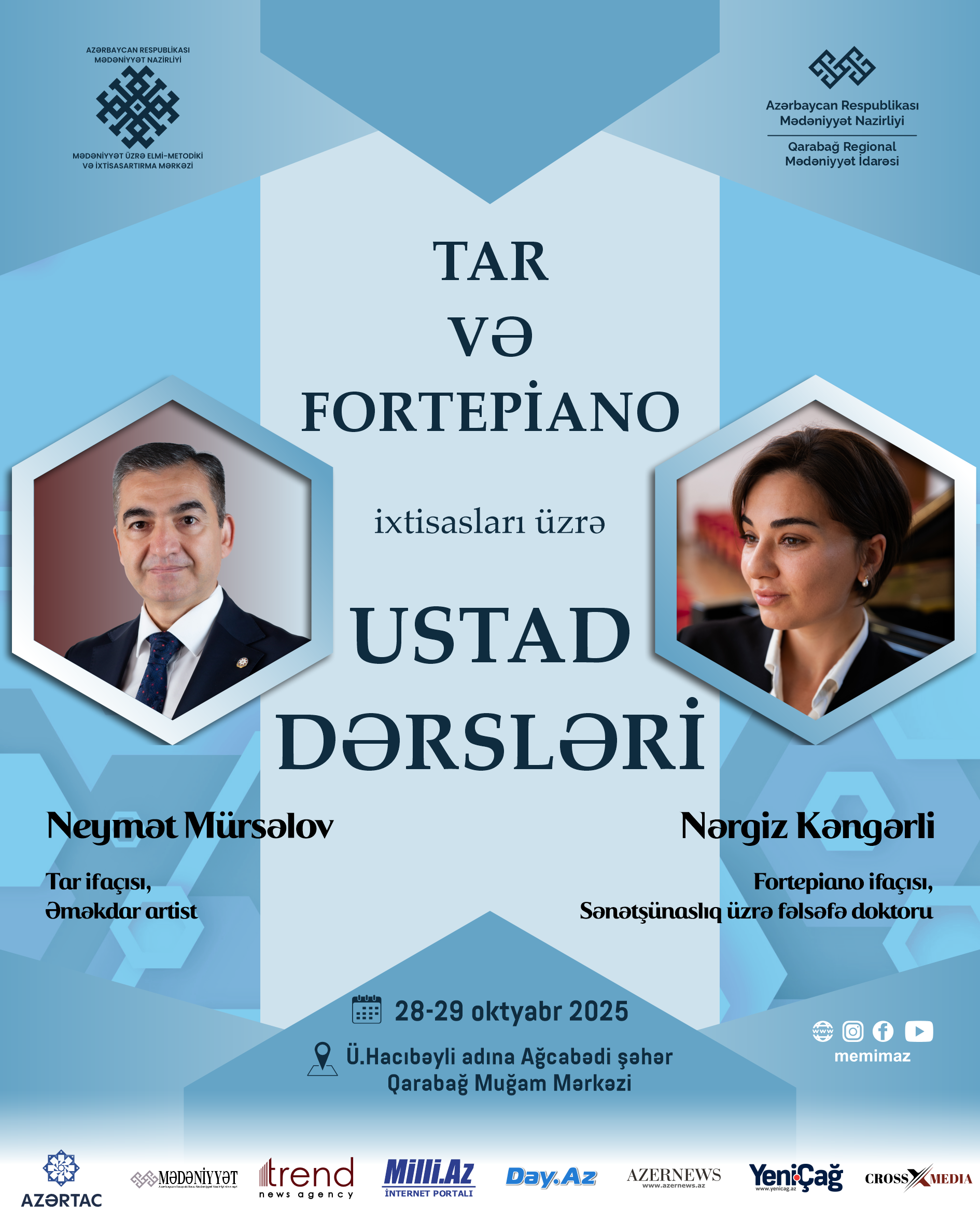 “Mədəniyyət rüzgarı” çərçivəsində silsilə ustad dərsləri də nəzərdə tutulur. Oktyabrın 27-də Bərdə şəhər 1 nömrəli uşaq incəsənət məktəbində Xalq artisti, professor Zəhra Quliyevanın iştirakı ilə violin, oktyabrın 28-də isə Üzeyir Hacıbəyli adına Ağcabədi şəhər Qarabağ Muğam Mərkəzində Əməkdar artist Neymət Mürsəlovun iştirakı ilə tar, sənətşünaslıq üzrə fəlsəfə doktoru Nərgiz Kəngərli tərəfindən fortepiano ixtisası üzrə ustad dərsləri keçiriləcək.