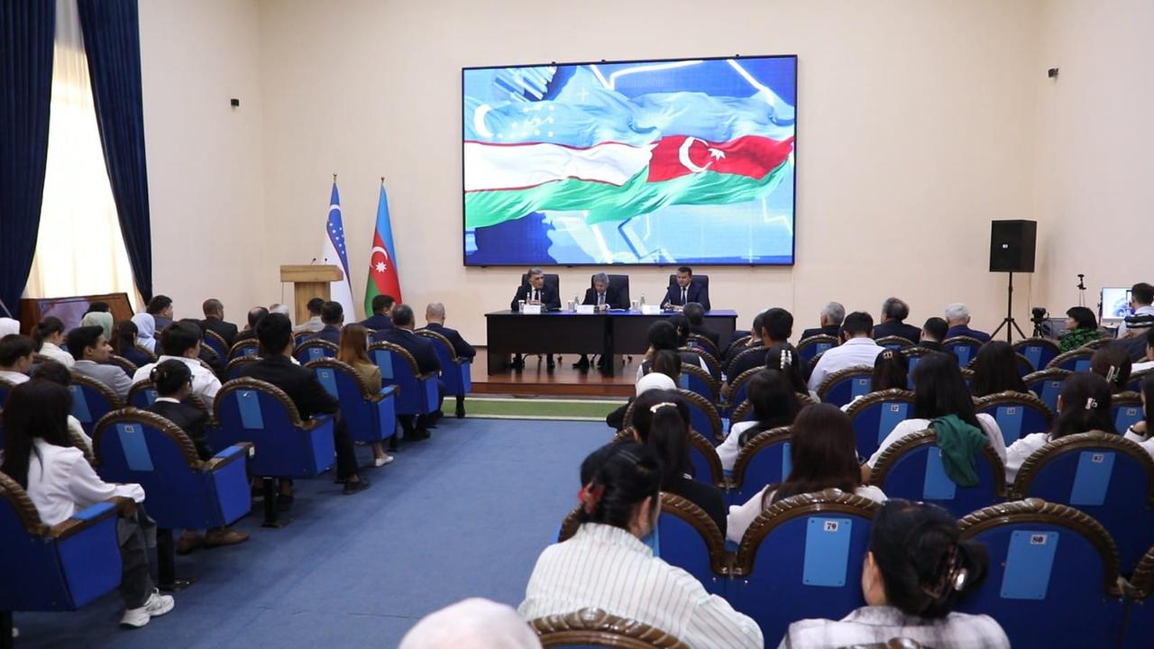 “Özbəkistan-Azərbaycan” Dostluq Cəmiyyətinin üzvləri-tarix elmləri doktoru Azər Adıgözəlov və fəlsəfə üzrə elmlər doktoru, professor Niqina Şermuxammedovanın “Özbəkistan və Azərbaycanın diplomatik münasibətlərinin tarixi və bugünkü dövrdə əhəmiyyəti” və “Özbəkistan-Azərbaycan:tərəfdaşlıq münasibətləri” mövzularında məruzələri dinlənilib.