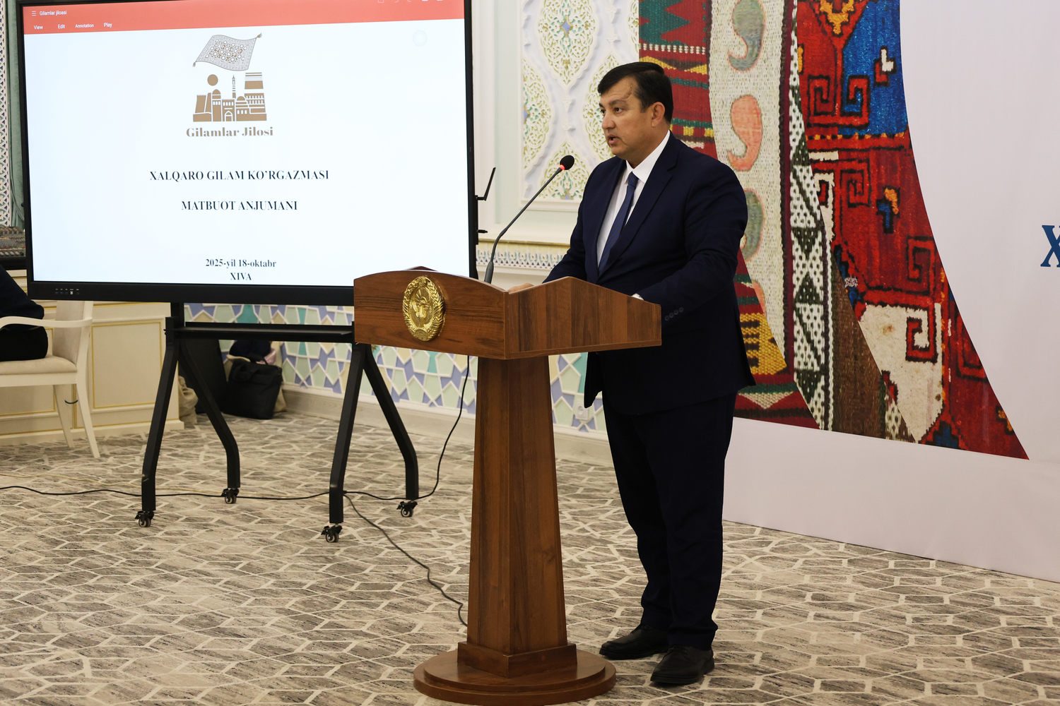Sərgi-festivalın birinci günü keçirilən mətbuat konfransında respublika “Hunərmənd” birliyinin sədri Rəsuljon Mirzəhmədov, Xarəzm vilayəti hakiminin müavini Botir Səidov və başqaları ilk dəfə keçirilən xalça festivalının məqsədi, əhəmiyyəti və beynəlxalq əməkdaşlığın perspektivlərindən danışıblar.