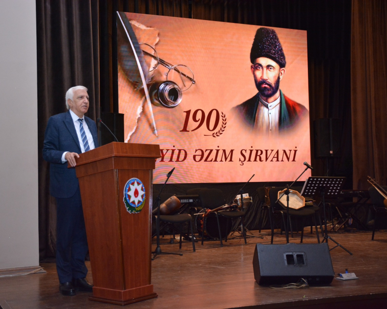 Azərbaycan Prezidenti İlham Əliyevin “Seyid Əzim Şirvaninin 190 illiyinin qeyd edilməsi haqqında” Sərəncamına əsasən, tanınmış şair, maarifçi və ictimai xadim Seyid Əzim Şirvaninin yubileyinə həsr olunan növbəti tədbir bu dəfə onun doğulub boya-başa çatdığı Şamaxıda keçirilib.