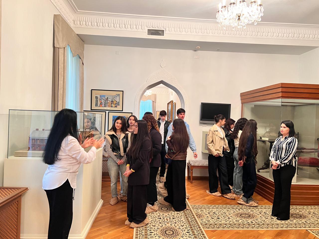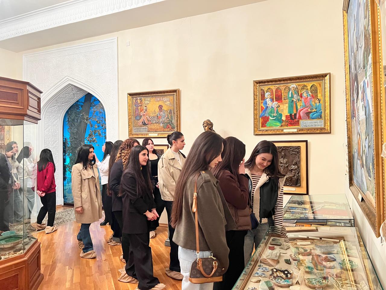 Daha sonra muzeyin Beynəlxalq əlaqələr və dünya muzeyləri şöbəsinin böyük elmi işçi, filologiya üzrə fəlsəfə doktoru Gülnar Əqiq tələbələrə həm Azərbaycan ədəbiyyatının müxtəlif mərhələləri, həm də incəsənət əsərləri haqqında ətraflı məlumat verib. Ziyarətçilər nadir eksponatlar, əlyazma nüsxələri, miniatür nümunələri və müxtəlif dövrlərə aid ədəbi irsi əks etdirən materiallarla, təsviri sənət nümunələri və onların tarixi ilə daha yaxından tanış olublar.