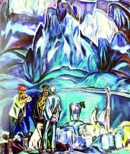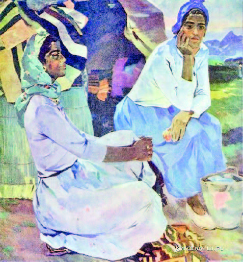 Ziyarətçilər Milli İncəsənət Muzeyində qorunub saxlanılan “Dağlarda alaqaranlıq” əsərini görən kimi istər-istəməz ayaq saxlayırlar. Rəssam təbiətə səyahətləri zamanı çəkdiyi etüdlərdən də istifadə edərək bu möhdəşəm əsəri yaradıb. Yağlı boya ilə işlənmiş rəsmdə dağ həyatının ruhu, insanla təbiətin sıx təması özünü bariz göstərir. Rəssam öz qəhrəmanlarını axşam çağı istirahət zamanı təsvir edib. Dərin düşüncələrə dalmış başı çalmalı xanımların gözləri uzaqlara dikilib. Burada dağ yerlərinə xas element kimi xalça da var, arxa planda çəmənlik və dağlar da.
