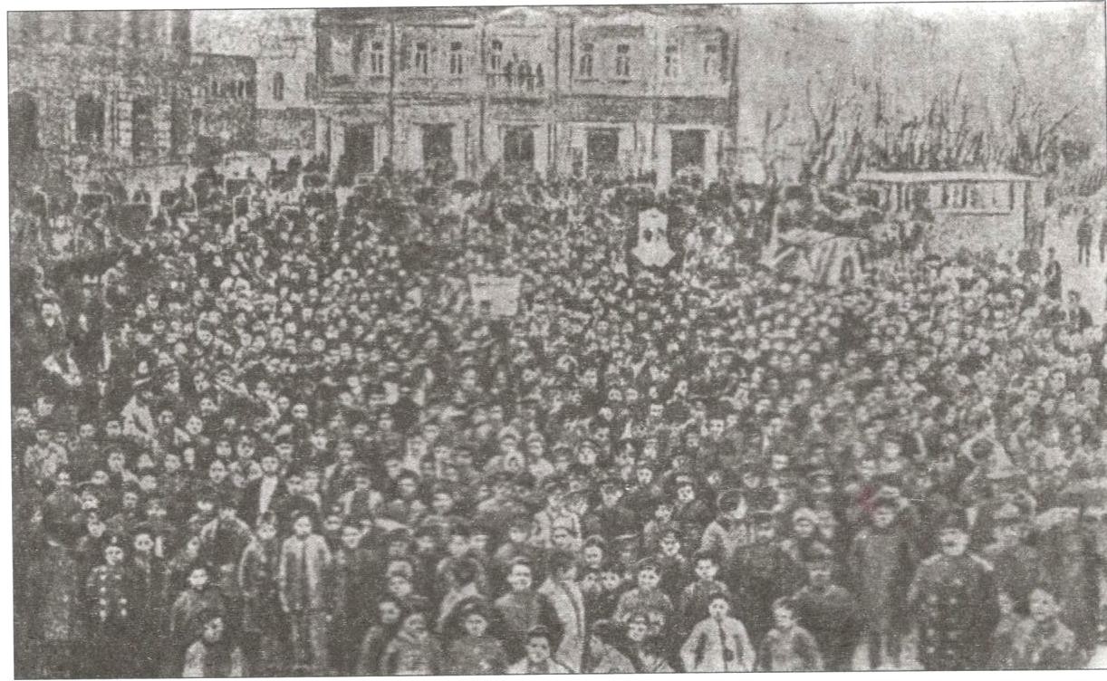 Həsən bəy Zərdabinin vəfat etdiyi gün Bakıda yaşayan Xalq kütləsinin onun yaşadığı İçərişəhər Qala Qapısı 47 ünvanı qarşısında meydana toplanması (28 noyabr 1907-ci il)