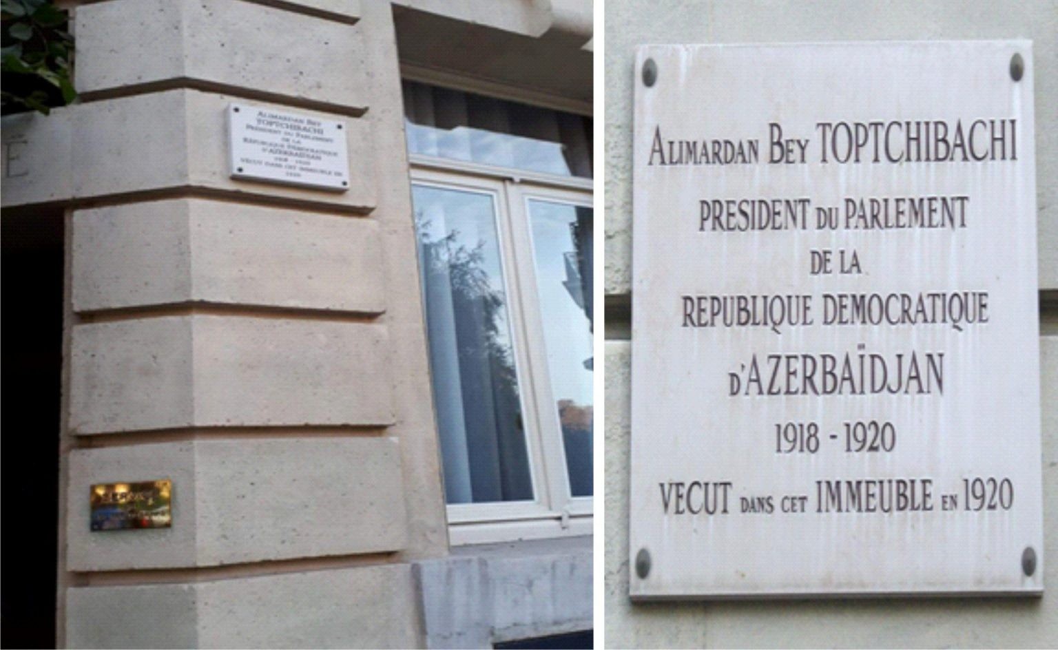 Hörmətli oxucular, ziyalılar, bizə o da məlumdur ki, 1934-cü ildə Parisdə vəfat edən Əlimərdan bəy Topçubaşovun yaşadığı evə xatirə lövhəsi vurulmuşdur.