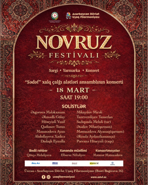 Martın 17-də Azərbaycan Dövlət Uşaq Filarmoniyasında “Novruz festivalı” keçiriləcək.