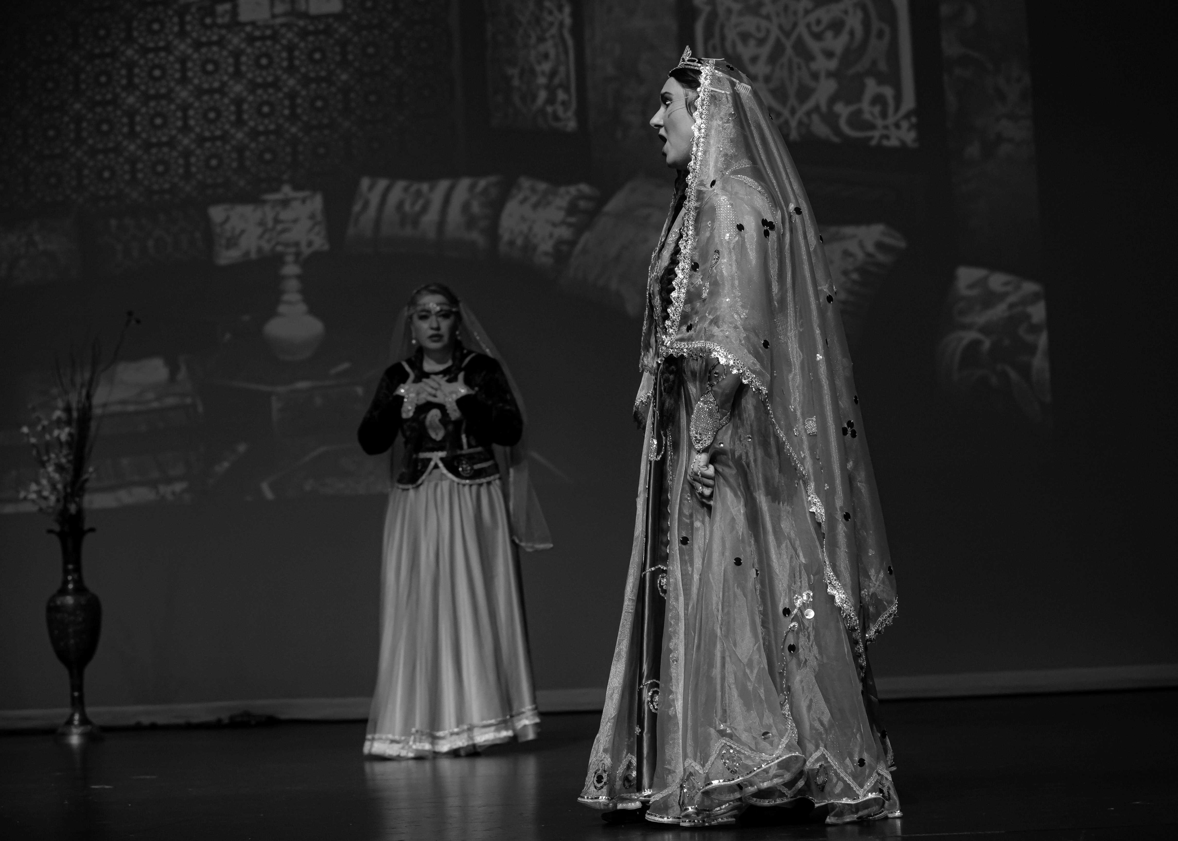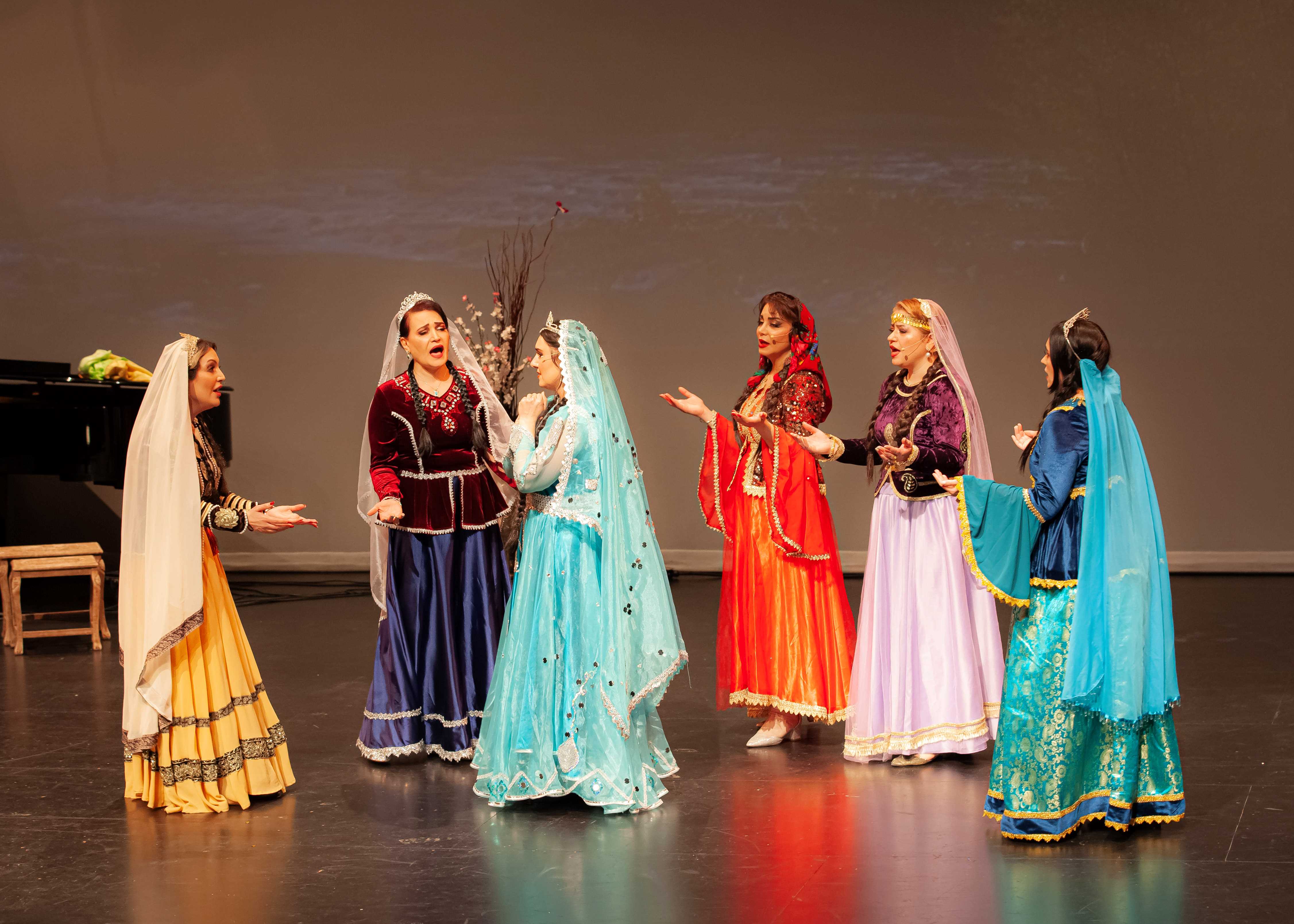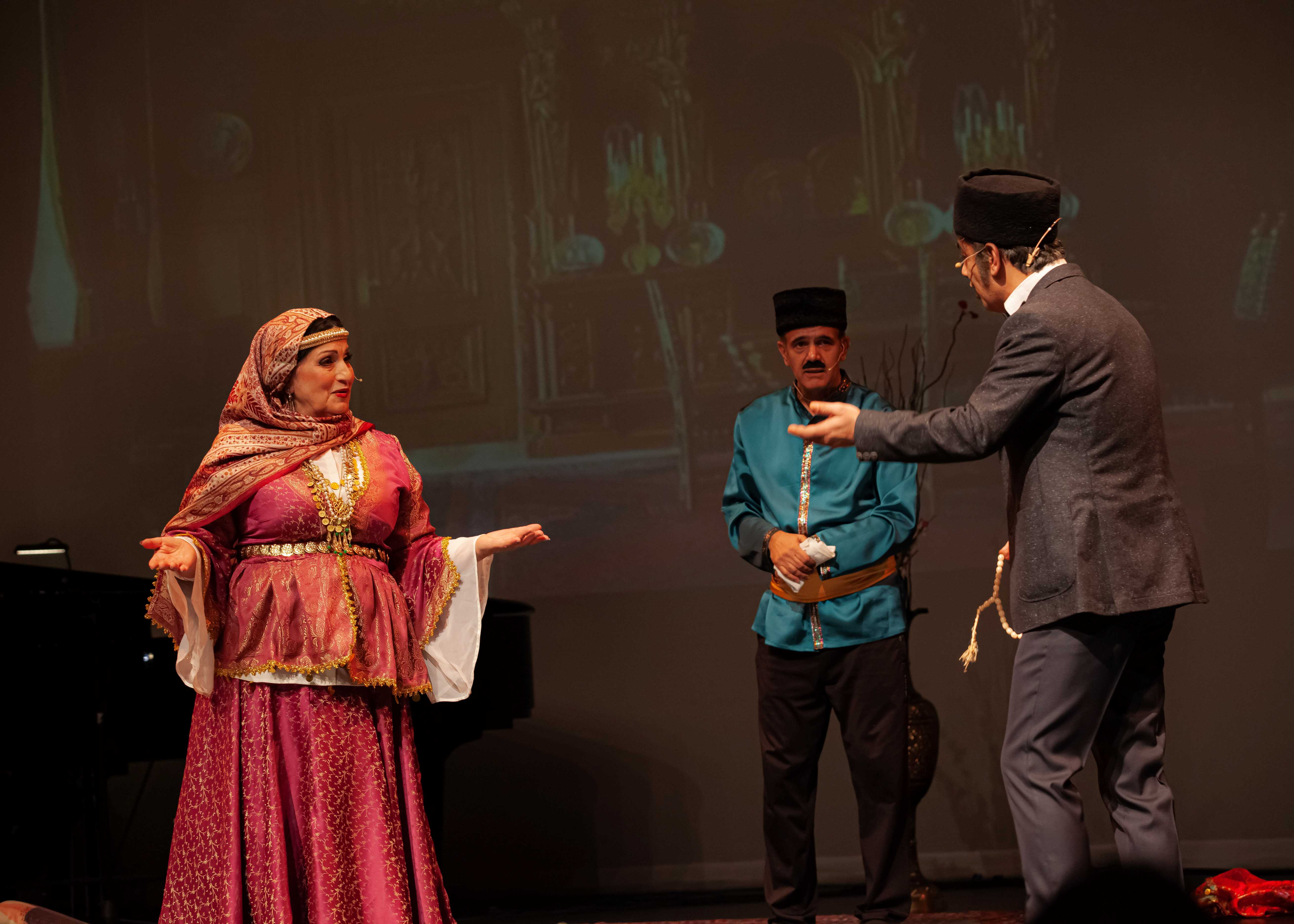 Tamaşada rolları İlyas Gəncəviniya (Əsgər), Kristina Rəhimova (Gülçöhrə), Rövşən Tağıyev (Süleyman), Nəsrin Əttari (Asya), Məmməd Peyğəmbəri (Soltan bəy), Nurqəmər Peyğəmbəri (Cahan xala), Leyla Kərəmzadə (Telli), Səid Şirazi (Vəli) və ansamblın digər üzvləri ifa ediblər. Rəngarəng milli geyimlərdə çıxış edən aktyorlar, rəqqaslar və musiqiçilər peşəkar ifaları ilə tamaşaçılara unudulmaz anlar yaşadıblar. Səhnə əsərini yüksək qiymətləndirən izləyicilər incəsənət ustalarının çıxışlarını gur alqışlarla qarşılayıblar.
