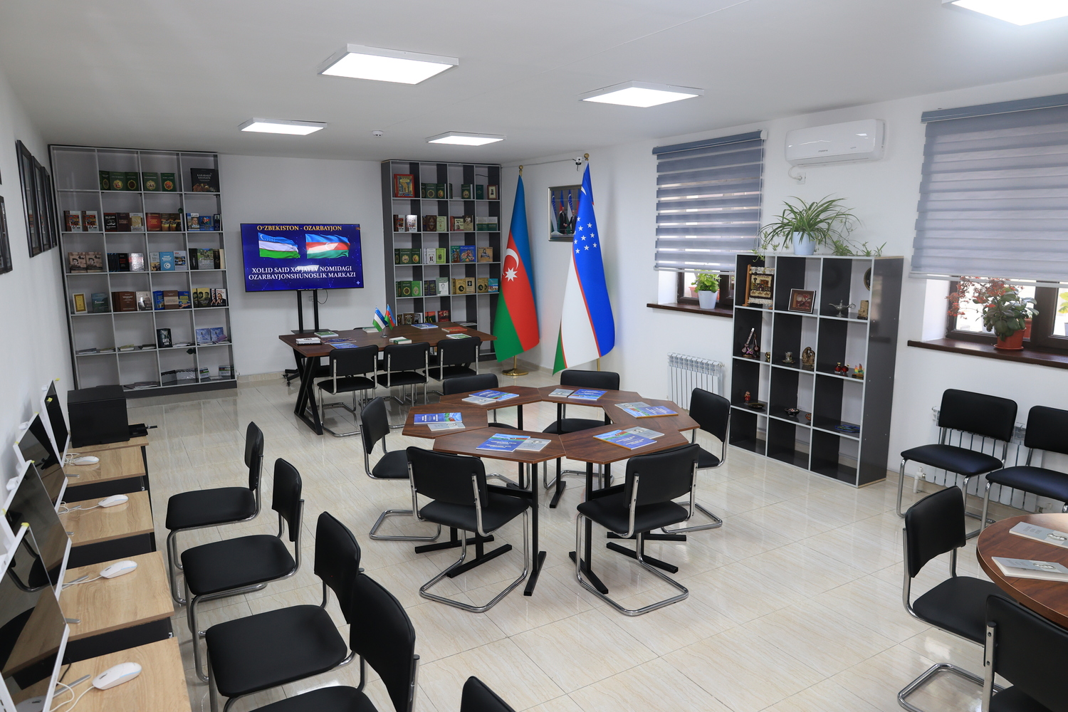 Mərkəzin tərtibatında Azərbaycan və Özbəkistanın dövlət bayraqları, görkəmli şəxsiyyətlərin portretləri, Azərbaycanın xəritəsi və digər vizual elementlər yer alıb.