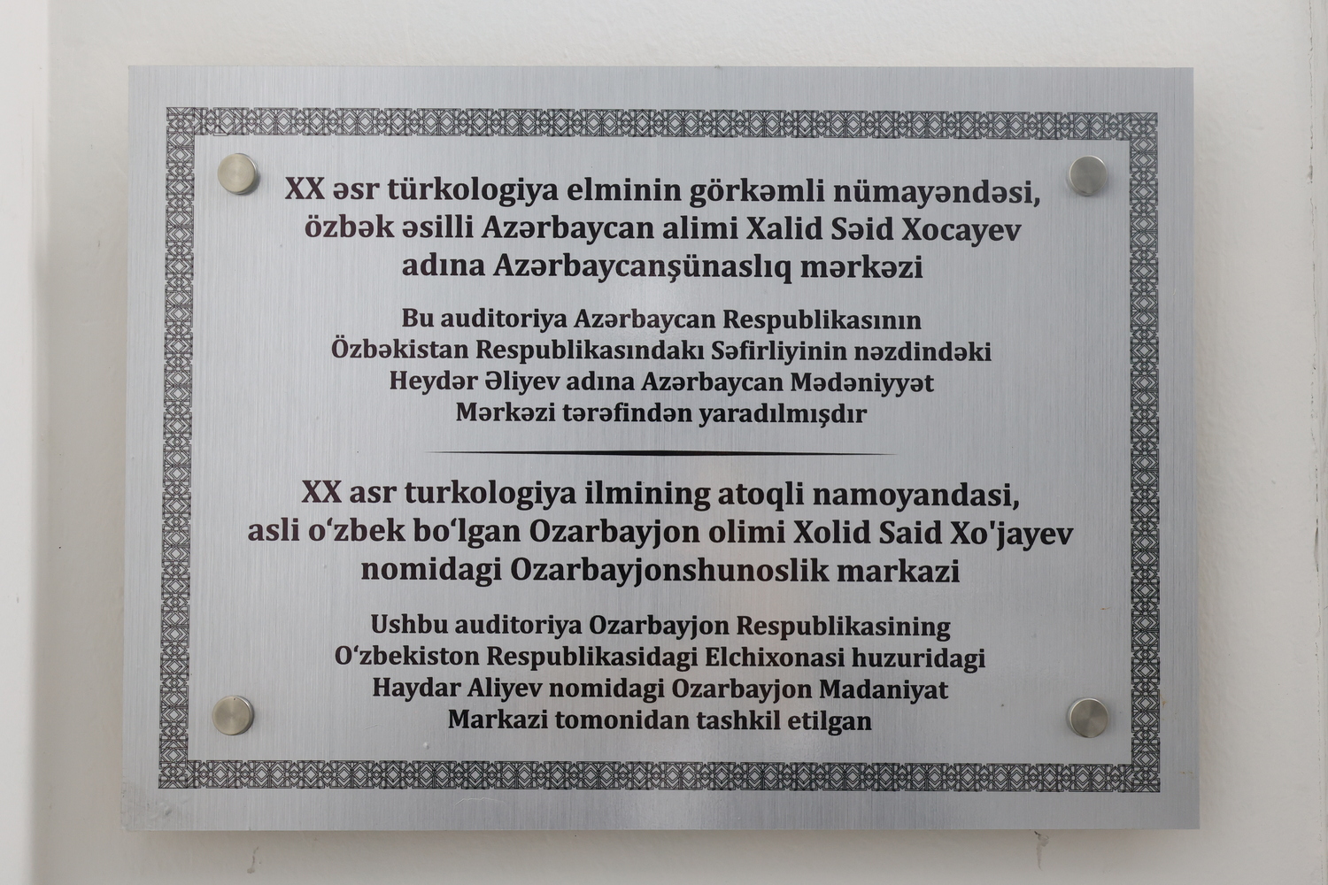 Daşkənd İqtisadiyyat və Pedaqogika Universitetində Azərbaycanın Özbəkistandakı səfirliyinin nəzdindəki Heydər Əliyev adına Azərbaycan Mədəniyyət Mərkəzinin (AMM) layihəsi ilə XX əsr türkologiya elminin görkəmli nümayəndəsi, özbək əsilli Azərbaycan alimi Xalid Səid Xocayevin adını daşıyan Azərbaycanşünaslıq Mərkəzinin açılışı keçirilib.