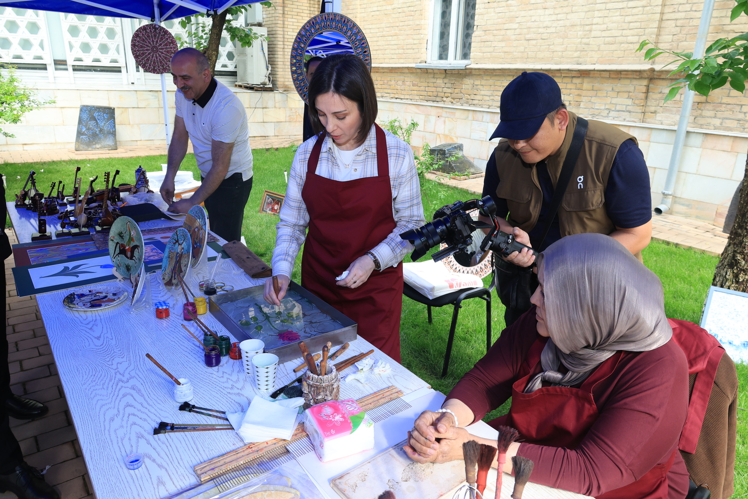 Tədbirdə həmçinin Özbəkistanın sənət ustaları Nasiba Satiboldiyeva, Bibisora Rahmatullayeva və Şuxrat Ahmednazarov iştirak edərək öz əl işlərini təqdim edib, milli dekorativ-tətbiqi sənət ənənələrinin xüsusiyyətlərini nümayiş etdiriblər.