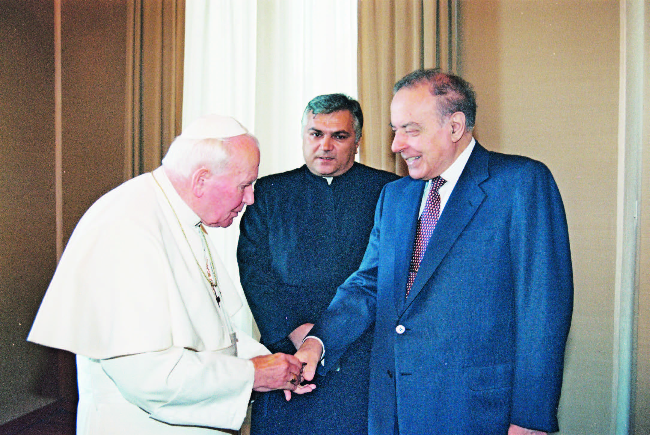 − Təbii ki, hamısını açıb demək mümkün deyil, amma bir neçəsini danışaram. Vatikan dövlətinin başçısı, Roma Papası II İoann Pavel 2002-ci il mayın 22-də Bakıya gəlmişdi. Yəqin bilirsiniz ki, Papa II İoann milliyyətcə polyak idi. Bakıya gələndə polyakların Azərbaycana necə gəlməsi, xüsusilə burada işləyən məşhur memarların niyə Azərbaycanda qalması, çoxlu sayda polyakın respublikamızda necə yaşadıqları ilə maraqlanırdı. Heydər Əliyev bir çox informasiyaları verəndən sonra mənə dedi, sən tarixçisən, danış, qoy bilsin polyaklar Bakıda necə dinc, əmin-amanlıq içində işləyib yaşayıblar. Papa da rus dilində danışırdı. O sual verir, mən də cavab verirdim. Sonda Papa qayıtdı ki, xanıma hədiyyə gətirin. Onlar da mənə muncuqdan bir boyunbağı bağışladılar.
