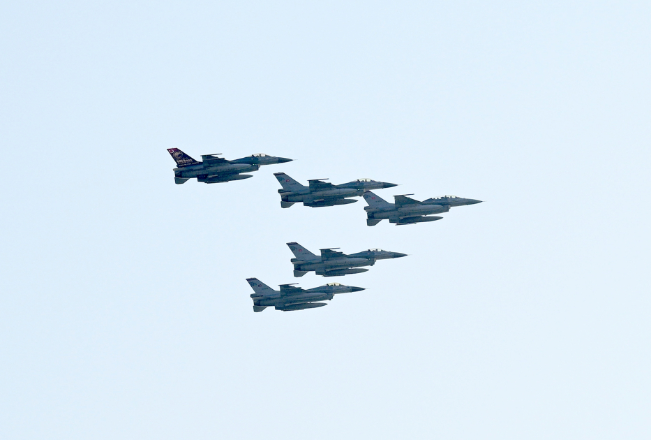 Azərbaycan və Türkiyə pilotlarının iştirakı ilə aviasiya nümayiş uçuşları isə izləyicilər üçün unudulmaz olub. Parad çərçivəsində uçan Mİ-17 döyüş-nəqliyyat helikopterləri Azərbaycan, Türkiyə və Pakistan respublikalarının Dövlət bayraqlarını daşıyıb, Mİ-17 helikopteri Ümummilli Lider Heydər Əliyevin portretini nümayiş etdirib. Həmçinin uzaqmənzilli hava-yer tipli raketlərlə təchiz olunmuş Mİ-17 döyüş-nəqliyyat helikopterləri, MFİ-17 təlim təyyarələri, L-39 təlim təyyarələri, İL-76 hərbi-nəqliyyat və silahlanmaya yeni qəbul edilmiş C-27J yük təyyarələri, silahlanmaya yeni qəbul edilmiş JF-17 (Cİ EF) çoxməqsədli qırıcı təyyarələr, Türkiyə Hərbi Hava Qüvvələrini təmsil edən F-16 çoxməqsədli qırıcı təyyarələr, modernizasiya olunmuş SU-25-Laçın hücum təyyarələri iftixar dolu hisslər yaşadıb. SU-25 hücum təyyarələri isə Azərbaycan Bayrağının rənglərini paytaxt səmasında canlandırıb.