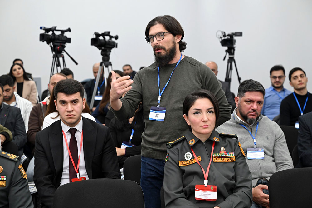 Müdafiə Nazirliyinin Mətbuat və İctimaiyyətlə Əlaqələr İdarəsinin rəisi - mətbuat katibi polkovnik Anar Eyvazov tədbirdə çıxış edərək bildirib ki, Müdafiə Nazirliyinin fəaliyyəti ilə bağlı ictimaiyyətin operativ qaydada məlumatlandırılması məqsədilə cari ildə nazirliyin rəsmi veb-səhifəsində (www.mod.gov.az) Azərbaycan, rus və ingilis dillərində 700-dək məlumat yerləşdirilib, nazirliyin rəsmi feysbuk səhifəsində 1330-dan, teleqramda 1050-dən, instaqramda 1300-dən, "X"-də isə 800-dən artıq paylaşım edilib.