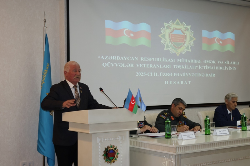 Tədbiri açıq elan edən Təşkilatın sədri polkovnik Cəlil Xəlilov 2025-ci ildə görülən işlər haqqında geniş hesabatla çıxış edib. Müharibə, Əmək və Silahlı Qüvvələr Veteranları Təşkilatının hər zaman olduğu kimi, bu il də gənclər arasında vətənpərvərlik təbliğatının gücləndirilməsini diqqət mərkəzində saxladığını bildirən polkovnik, Təşkilata üz tutan hər bir veteranın müraciətinə həssaslıqla yanaşıldığını, bu müraciətlər əsasında konkret addımlar atıldığını bildirib. Təşkilat sədri 2025-ci il üçün nəzərdə tutulan məqsədlərə nail olunduğunu, gələn ilin fəaliyyət planının təsdiq edildiyini vurğulayıb.