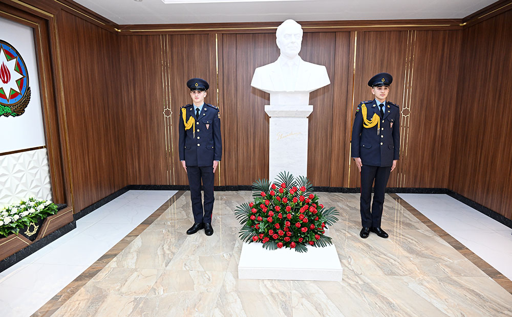 Əvvəlcə hərbi liseyin ərazisindəki Heydər Əliyev muzeyi ziyarət olunub, Ulu Öndərin büstü önünə gül dəstələri düzülərək xatirəsinə dərin hörmət və ehtiram nümayiş etdirilib.