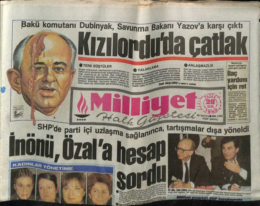 20 Yanvar faciəsindən sonra ümumilli lider Heydər Əliyevin Qorbaçovun böhtan dolu çıxışlarına qarşı Moskvada mətbuat konfransında etiraz etməsi Türkiyənin “Cumhuriyet” qəzetinin 22 yanvar 1990-cı il sayında “Bakü’de dev protesto gösterisi” xəbərində öz əksini tapmışdı.