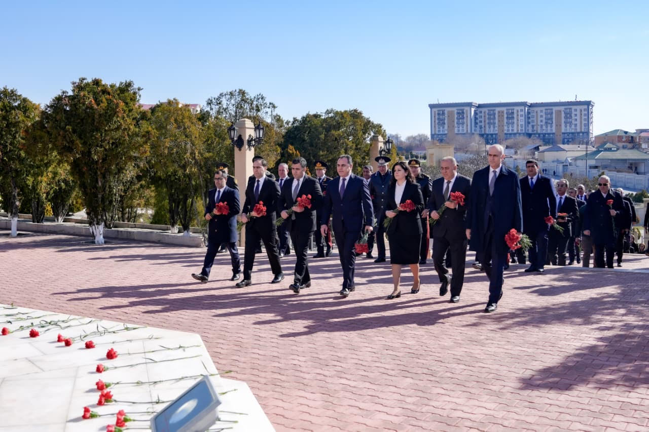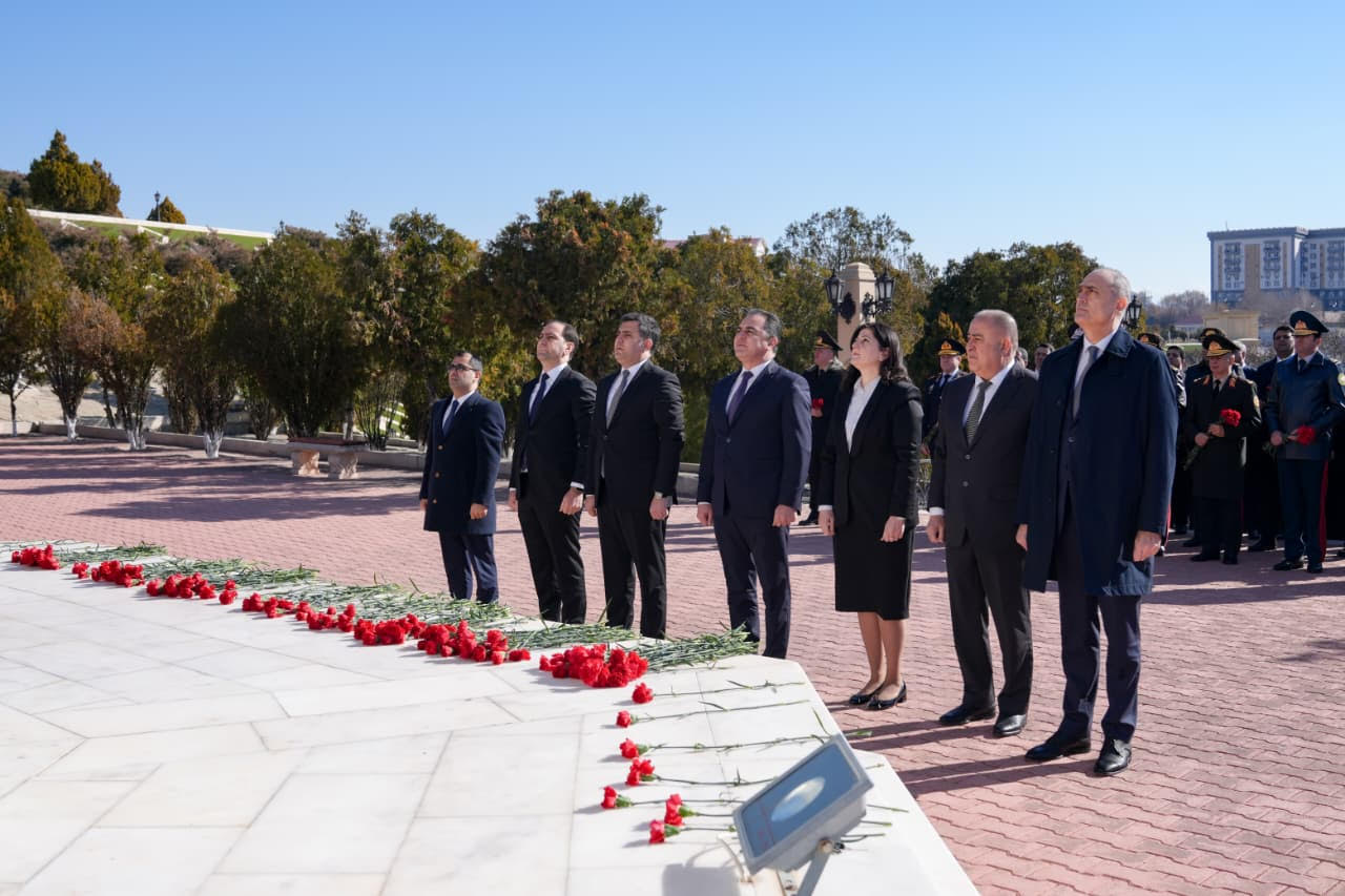 Abidə önünə güllər qoyulub, Xocalıda soyqırıma məruz qalmış soydaşlarımızın xatirəsinə ehtiram ifadə olunub.