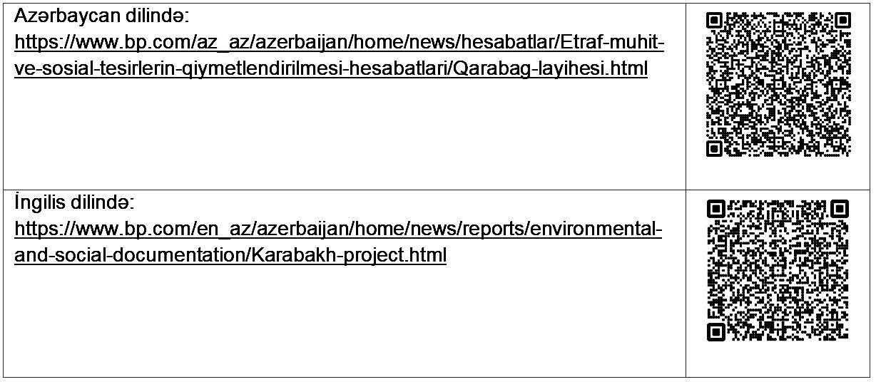 ƏMTQ sənədinin və qeyri-texniki xülasənin layihə variantları bütöv olaraq Azərbaycan və ingilis dillərində hazırlanıb və aşağıdakı link və ya QR kodu vasitəsilə bp-nin veb-səhifəsindən əldə edilə bilər: