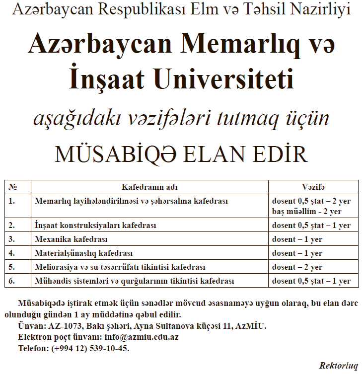 Azərbaycan Memarlıq və İnşaat Universiteti müsabiqə elan edir