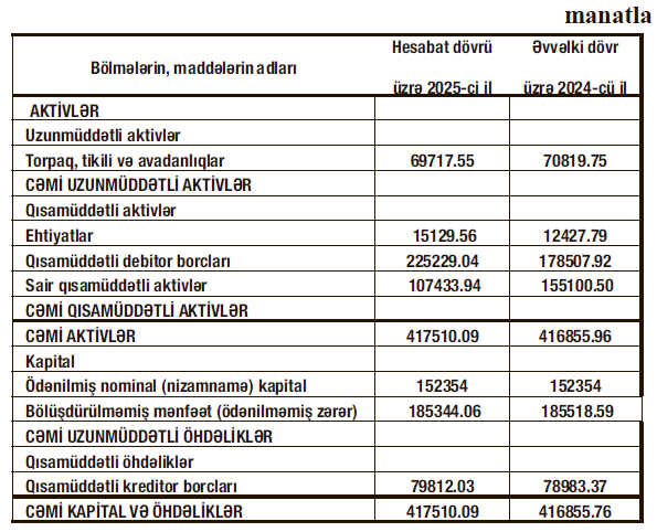 “Sabunçuavtomatikaquraşdırma “ASC-nin 2025-ci il dekabrın 31-nə mühasibat balansı
