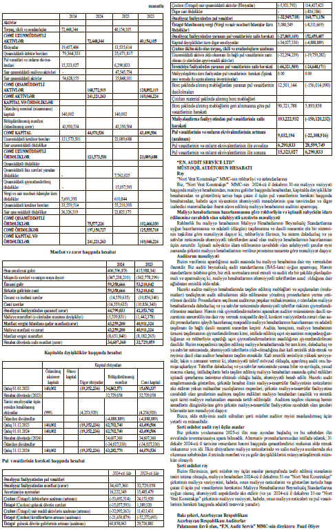 “Nort Vest Konstrakşn” ММC-nin 31 dekabr 2024-cü il üçün maliyyə vəziyyəti haqqında hesabatı