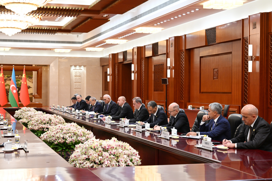 Dövlətimizin başçısı qeyd etdi ki, Çin bizim birinci idxal tərəfdaşımız olmaqla yanaşı, həm də dördüncü ticarət tərəfdaşımızdır. Prezident İlham Əliyev strateji tərəfdaşlıq haqqında Bəyannamənin bütün sahələrdə uğurla həyata keçirildiyini vurğulayaraq, Azərbaycanla Çinin Avrasiyanın bir çox ölkəsini əhatə edən nəqliyyat-logistika əməkdaşlığı sahəsində fəal səylər göstərdiyini dedi.