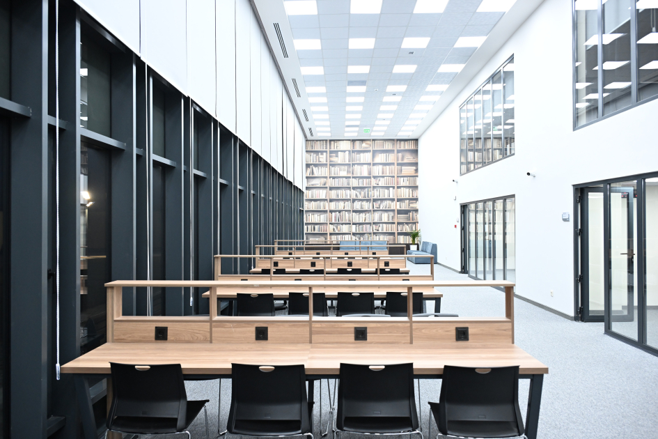 Tədris binasında 40 auditoriya, kompüter laboratoriyaları, kitabxana, oxu və akt zalları, iclas, inzibati və professor-müəllim otaqları mövcuddur. Müasir universitet konsepsiyasına uyğun dizayn edilərək inşa olunmuş binanın layihələndirilməsi və tikilməsində dayanıqlı inkişaf, inklüzivlik və resurslardan səmərəli istifadə prinsipləri nəzərə alınıb. Bir sözlə, bina tədris, tədqiqat və inzibati fəaliyyətin daha səmərəli şəkildə həyata keçirilməsinə imkan verən geniş və müasir infrastruktura malikdir.