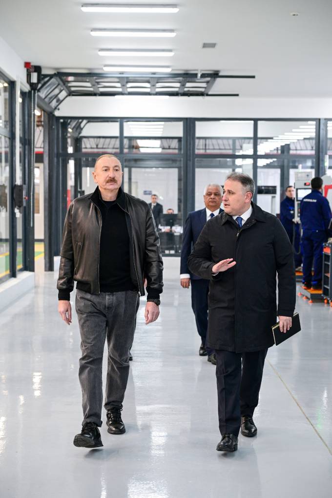 AZƏRTAC xəbər verir ki, dövlətimizin başçısı əvvəlcə Ulu Öndər Heydər Əliyevin zavodun həyətində ucaldılmış büstü önünə gül dəstəsi qoydu.
