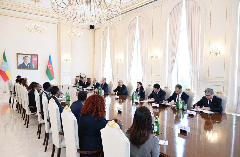 AZƏRTAC xəbər verir ki, qonaqları salamlayan Prezident İlham Əliyev dedi: Hörmətli cənab Baş nazir, hörmətli qonaqlar, Azərbaycana xoş gəlmisiniz. Çox şadam ki, bizi ziyarət edirsiniz. Bizim elə indicə cənab Baş nazirlə çox yaxşı söhbətimiz oldu və biz tərəfdaşlığımızın bir çox vacib sahələrini əhatə etdik. Mən cənab Baş nazirə bu yaxınlarda Efiopiyaya səfər etmiş qızım Leylaya göstərdiyi qonaqpərvərliyə görə minnətdarlığımı ifadə etdim. Bu səfər ona yaxşı, böyük təəssürat bağışladı. Yeri gəlmişkən, o, ilk dəfədir ki, nümayəndə heyətlərinin görüşündə iştirak edir və bu, onun Sizin ölkənizə, Sizin xalqınıza olan çox xüsusi münasibəti ilə bağlıdır. Mən Sizi bütün nailiyyətləriniz münasibətilə təbrik etmək istəyirəm.