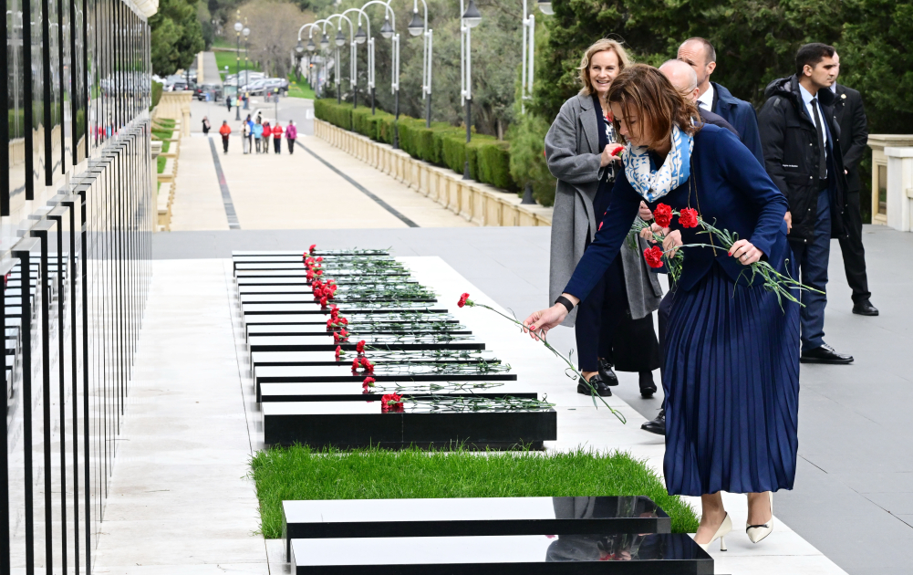 AZƏRTAC xəbər verir ki, Tanya Fayon əvvəlcə Azərbaycanın müstəqilliyi və ərazi bütövlüyü uğrunda mübarizədə canlarından keçmiş qəhrəman Vətən övladlarının xatirəsini ehtiramla yad edib, “Əbədi məşəl” abidəsinin önünə əklil qoyub.