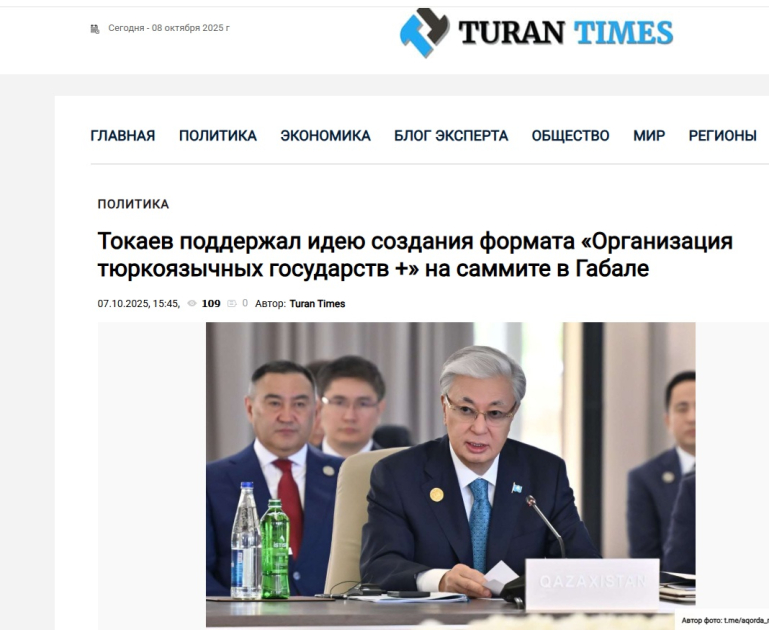 “Turantimes.kz” nəşri xəbər verir ki, Qazaxıstan beynəlxalq əməkdaşlığı gücləndirmək məqsədi daşıyan “Türk Dövlətləri Təşkilatı - Plyus” adlı yeni formatın yaradılması ideyasını dəstəkləyir.