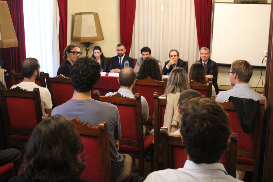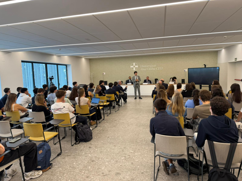 Abat Oliba CEU Universitetinin tələbələri ilə keçirilən görüş çərçivəsində BMTM nümayəndələri Azərbaycanın xarici siyasət prioritetləri, regional və beynəlxalq təhlükəsizlik məsələləri, eləcə də enerji və nəqliyyat sahələrində əməkdaşlıq imkanları barədə təqdimatlarla çıxış ediblər.