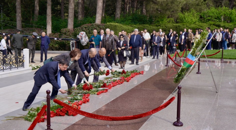 DİM-in verdiyi məlumata görə, mərkəzin əməkdaşları ümummilli liderin ruhu qarşısında baş əyib, məzarı üzərinə gül dəstələri düzüb, əziz xatirəsinə hörmət və ehtiramlarını ifadə ediblər.